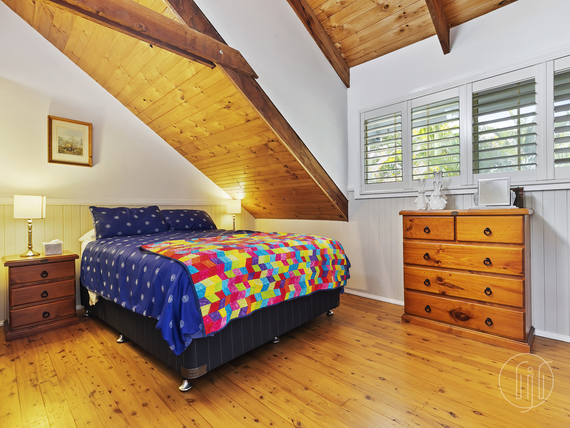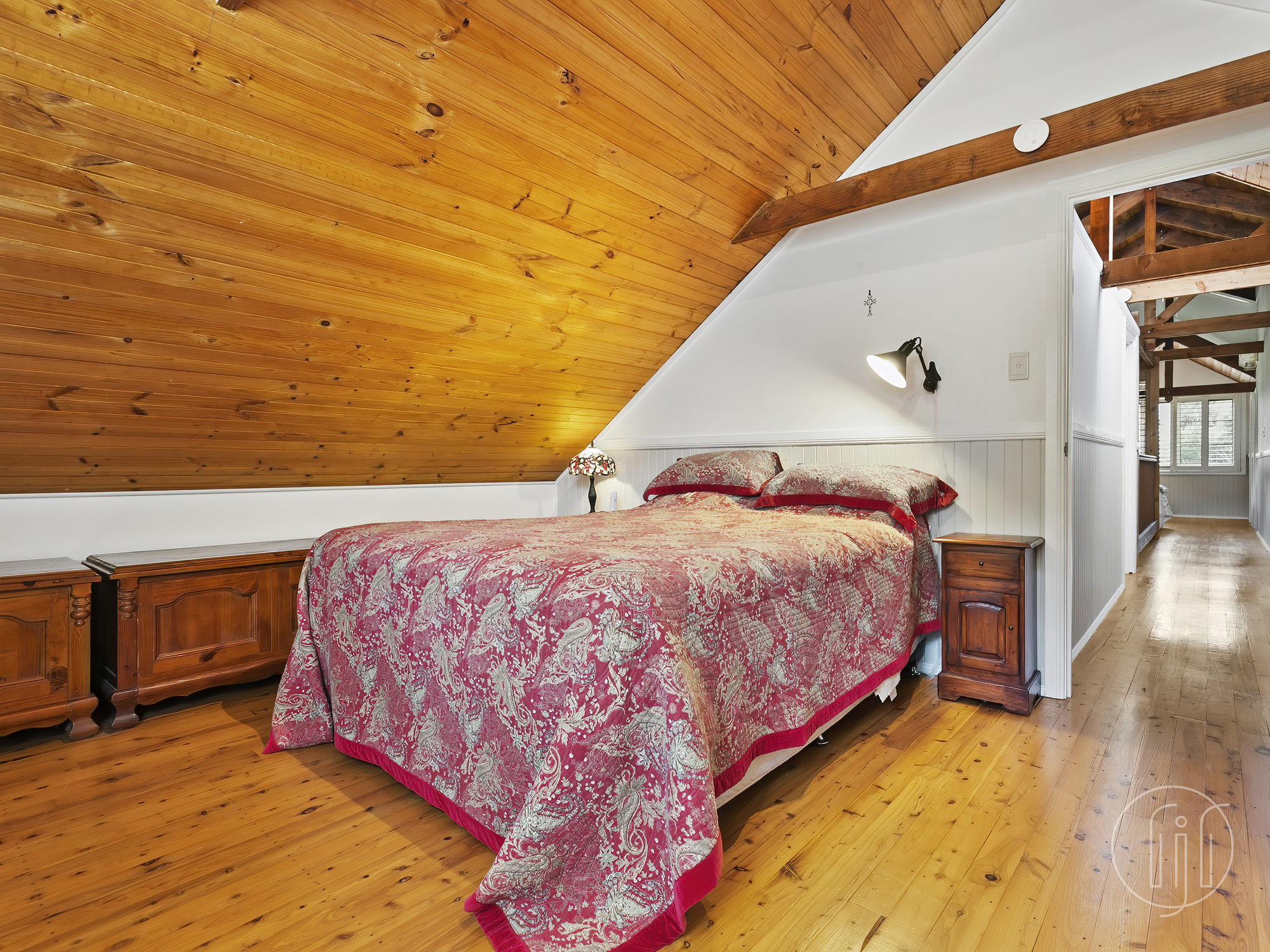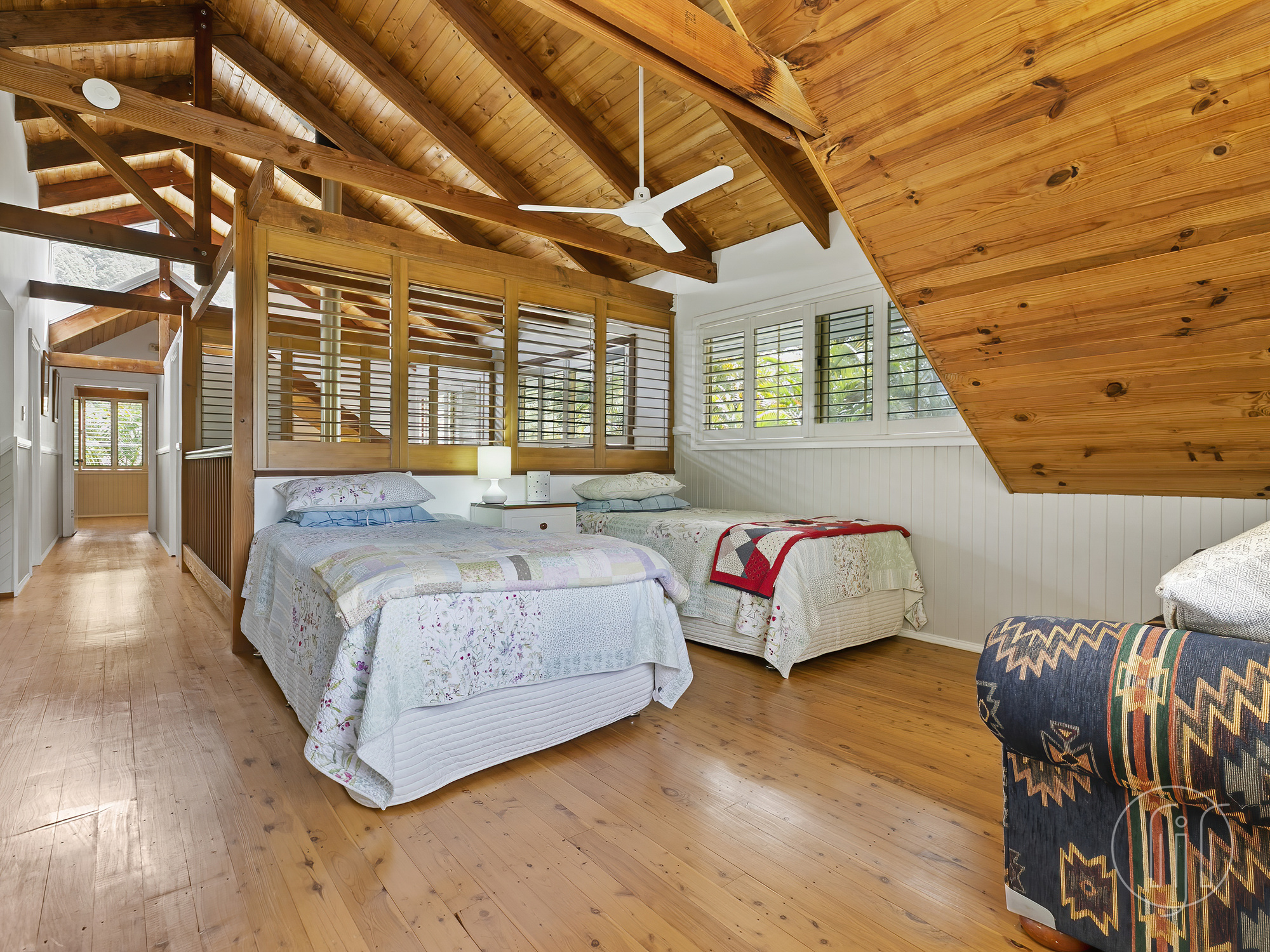 This level features timber shutters, polished timber floors, pine lined ceilings, exposed trusses, VJ wall paneling and RC/AC.