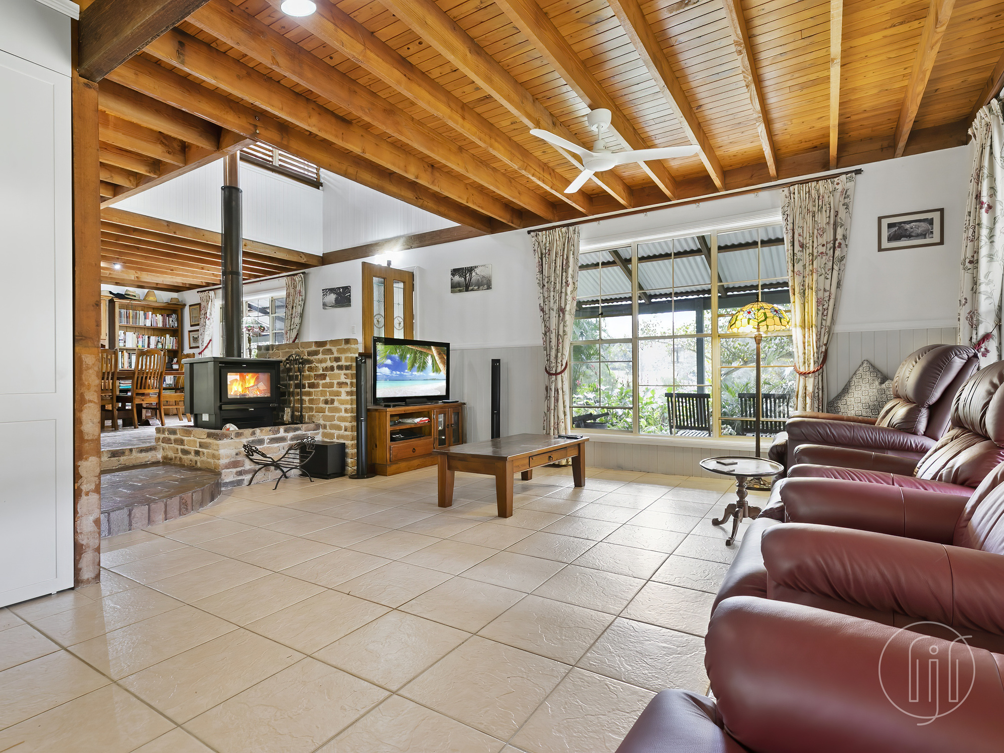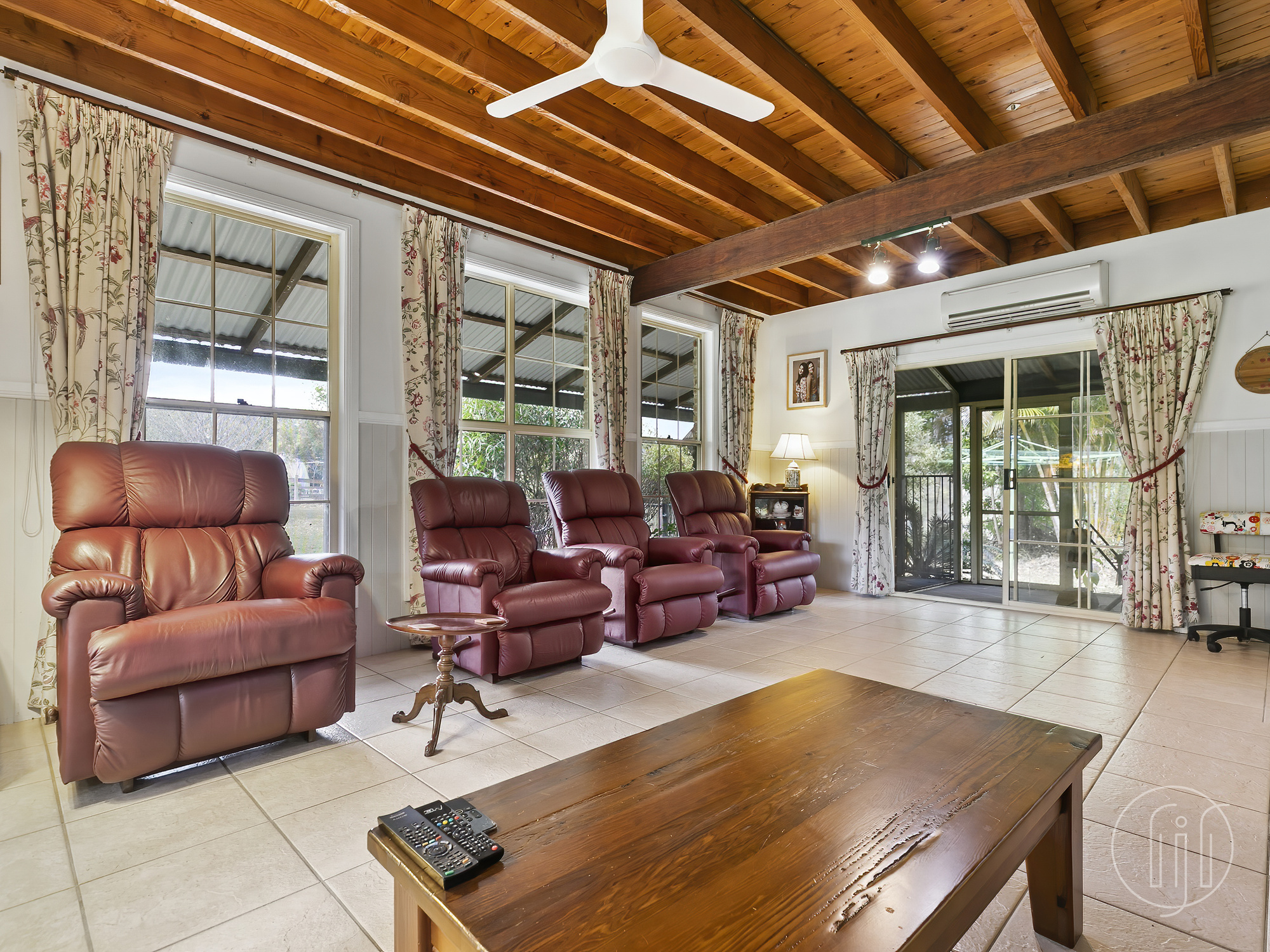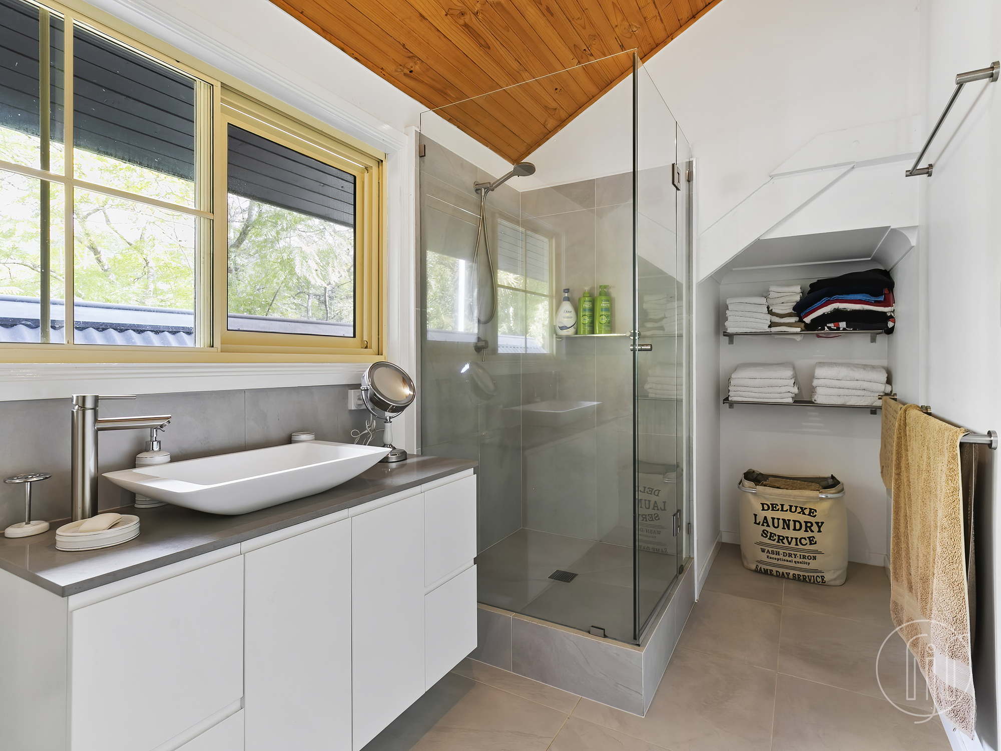 This level features timber shutters, polished timber floors, pine lined ceilings, exposed trusses, VJ wall paneling and RC/AC.