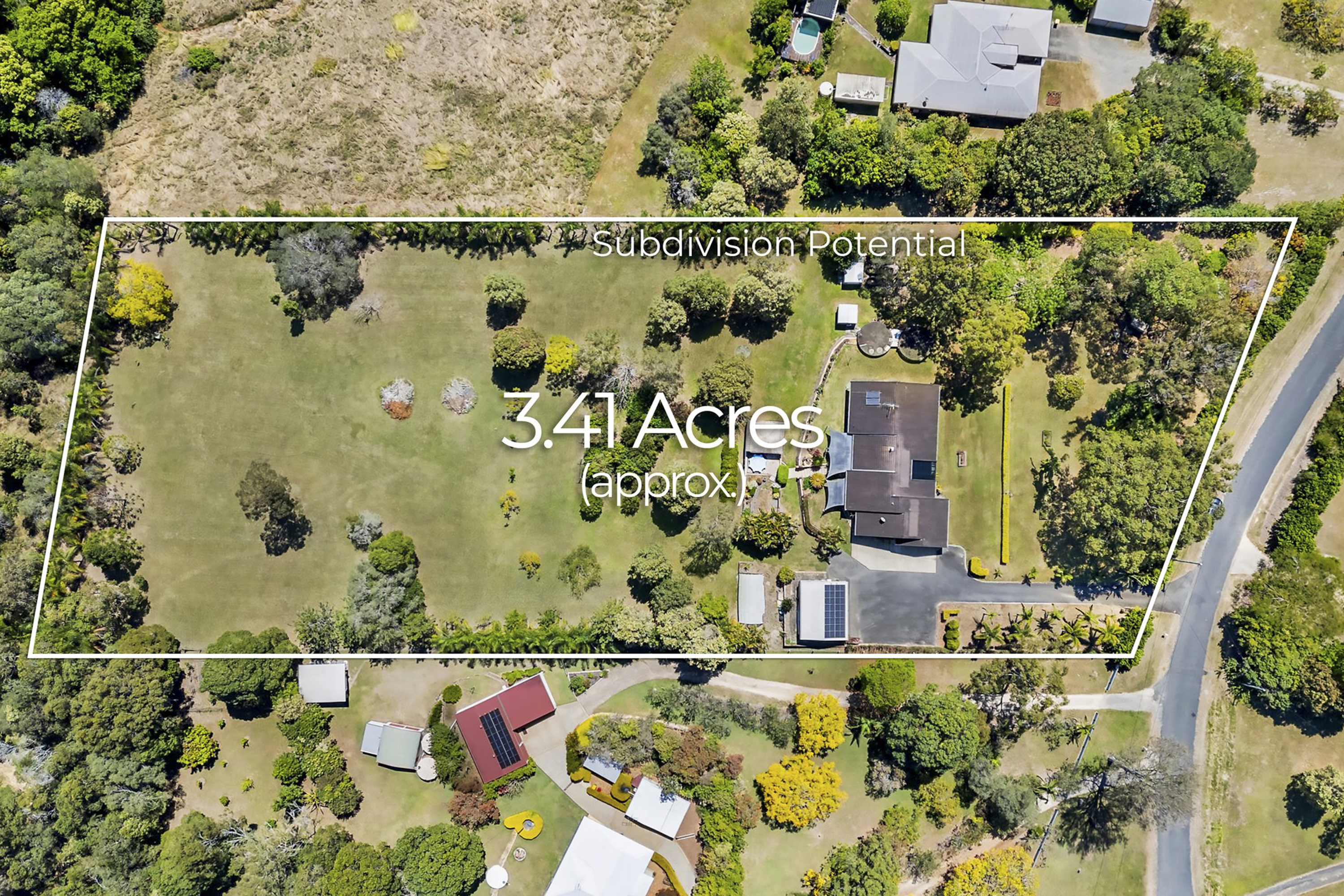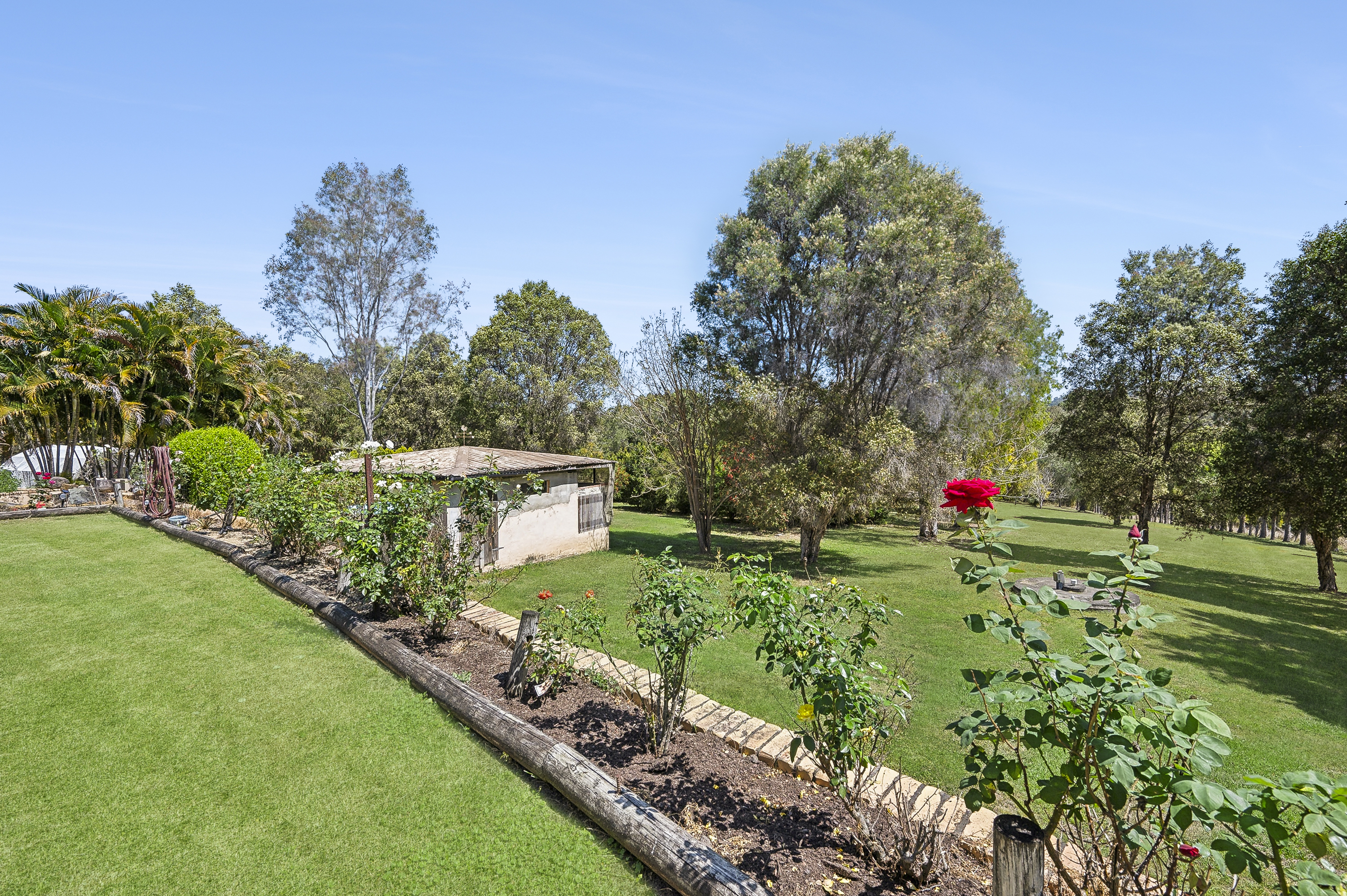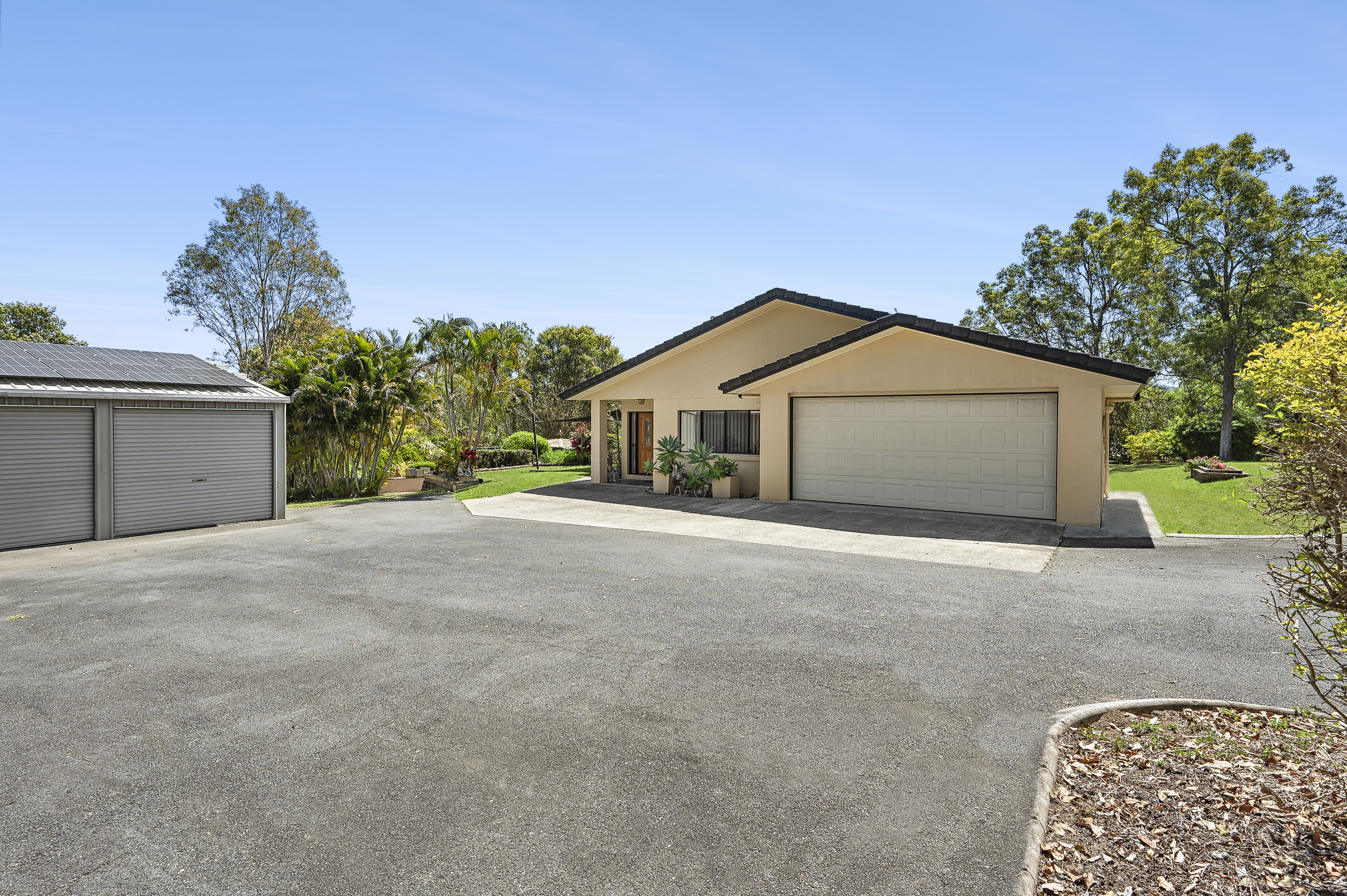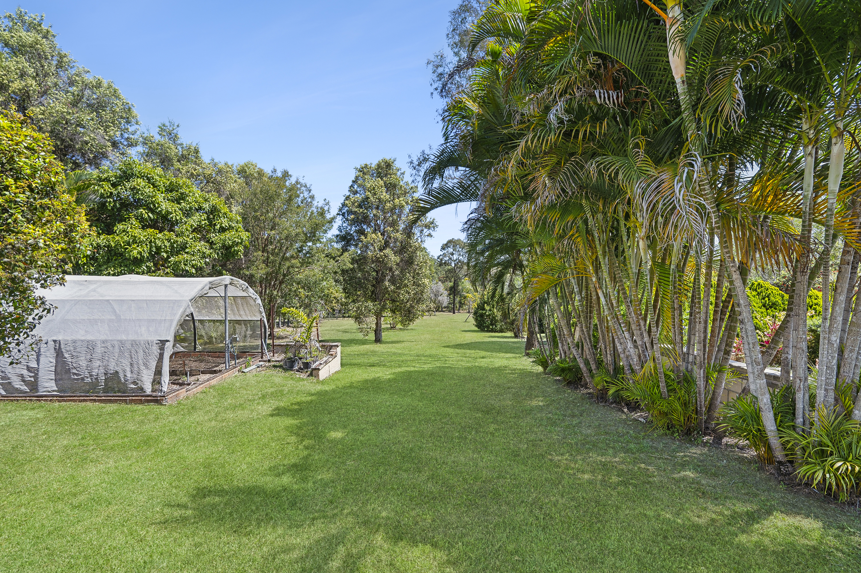 8m). - Convenient Access: Bitumen driveway with double gates. - Future Subdivision Potential: This beautifully landscaped block, lined with palm trees, has been