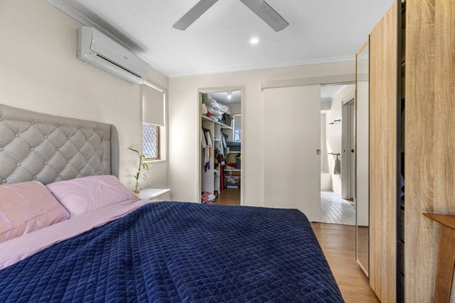 Retreat to any of the three good-sized bedrooms, each fitted with built-in wardrobes and ceiling fans, ensuring comfort year-round. The master bedroom is a true sanctuary, boasting air conditioning, a ceiling fan, and a walk-in wardrobe. The two-way bathroom is designed for convenience, featuring a stand-alone shower and a separate bath.