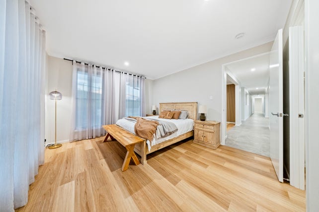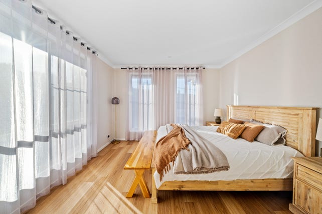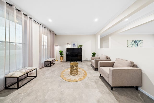 Nestled in a quiet cul-de-sac, the location is perfect for families seeking both privacy and convenience, with local schools just a short drive away. From the outset, a bold façade and landscaped frontage create a striking first impression. Inside, the interiors are light-filled and inviting, with a calming neutral palette, natural timber accents, and stone finishes that enhance the home's warmth and cohesion. High ceilings further elevate the sense of space, while low-maintenance, easy-care flooring ensures durability and practicality.