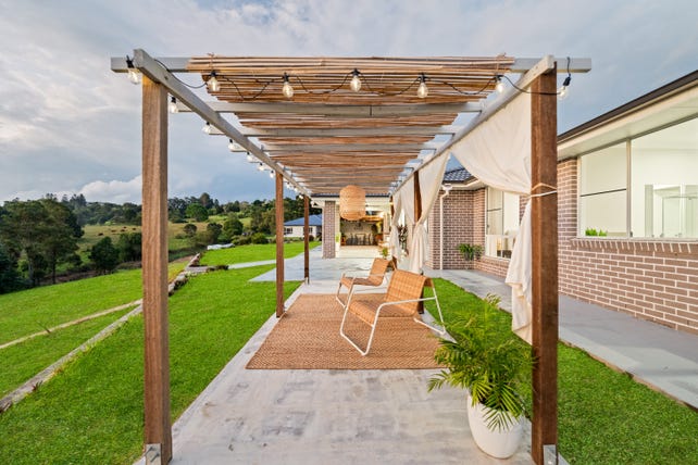 At the heart of the home is the spacious open-plan kitchen, living, and dining zone. The kitchen is a true standout, featuring stone benchtops, a gas cooktop, premium appliances, and a generous butler's pantry-perfect for entertaining or family life. Glass sliders open to an expansive alfresco area, complete with a timber pergola and ambient lighting, where you can enjoy the peaceful countryside views.