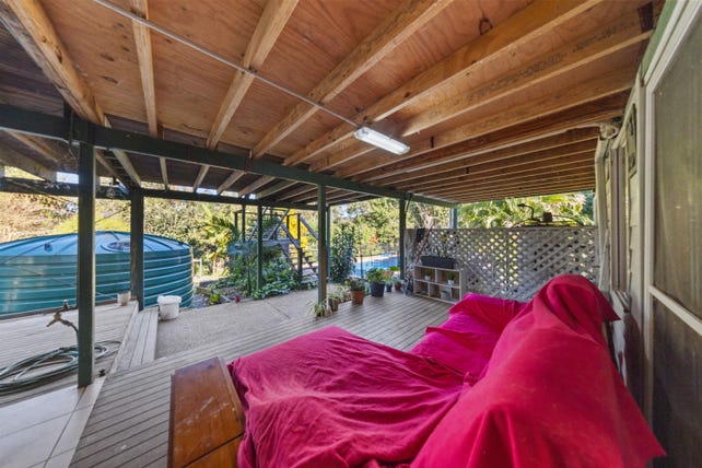 Outside, the land offers a balance of lifestyle and usability, with a seasonal creek, dam, well-fenced paddocks, chook pens, and a variety of established fruit and nut trees, including olives and macadamias.