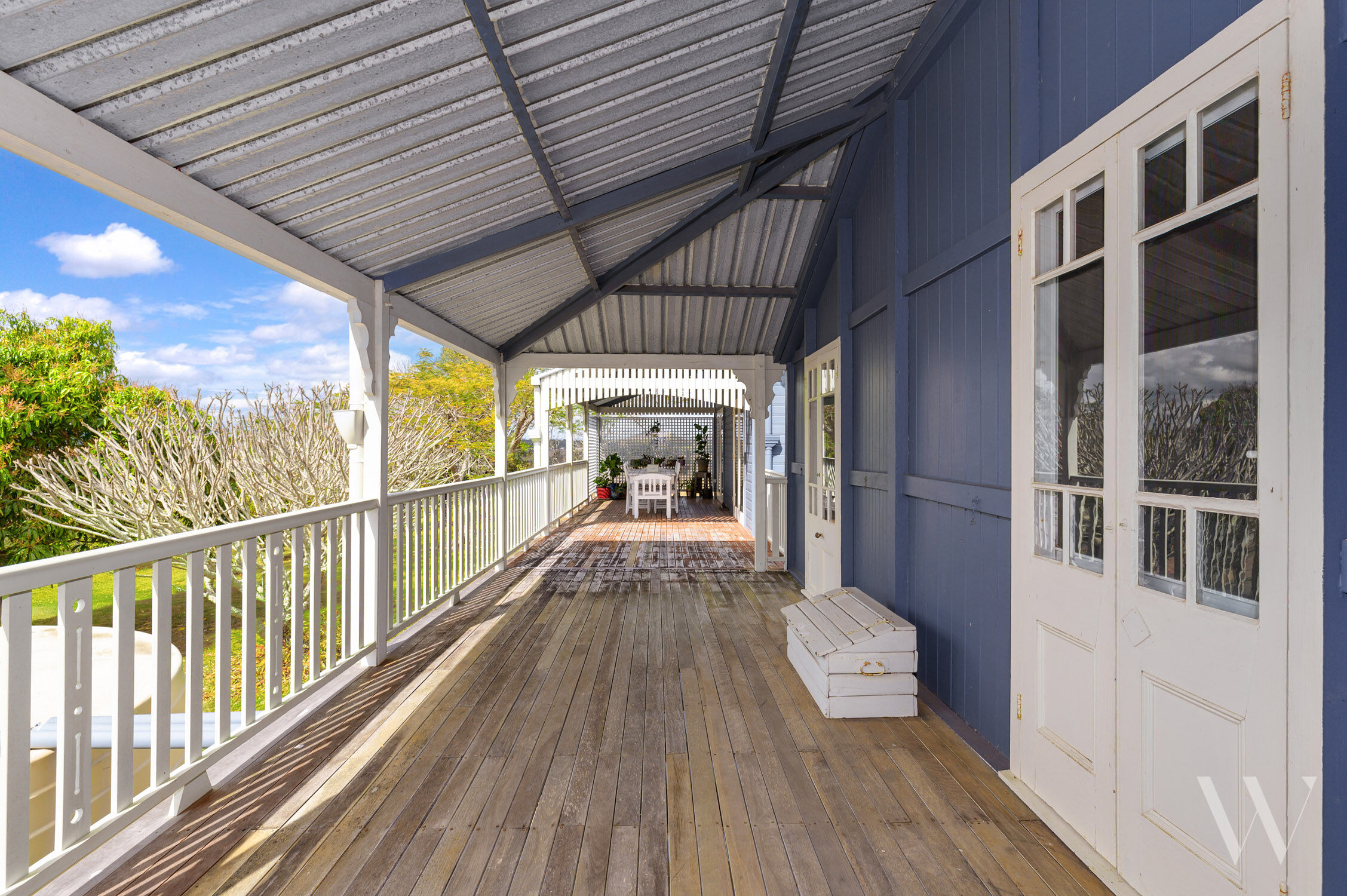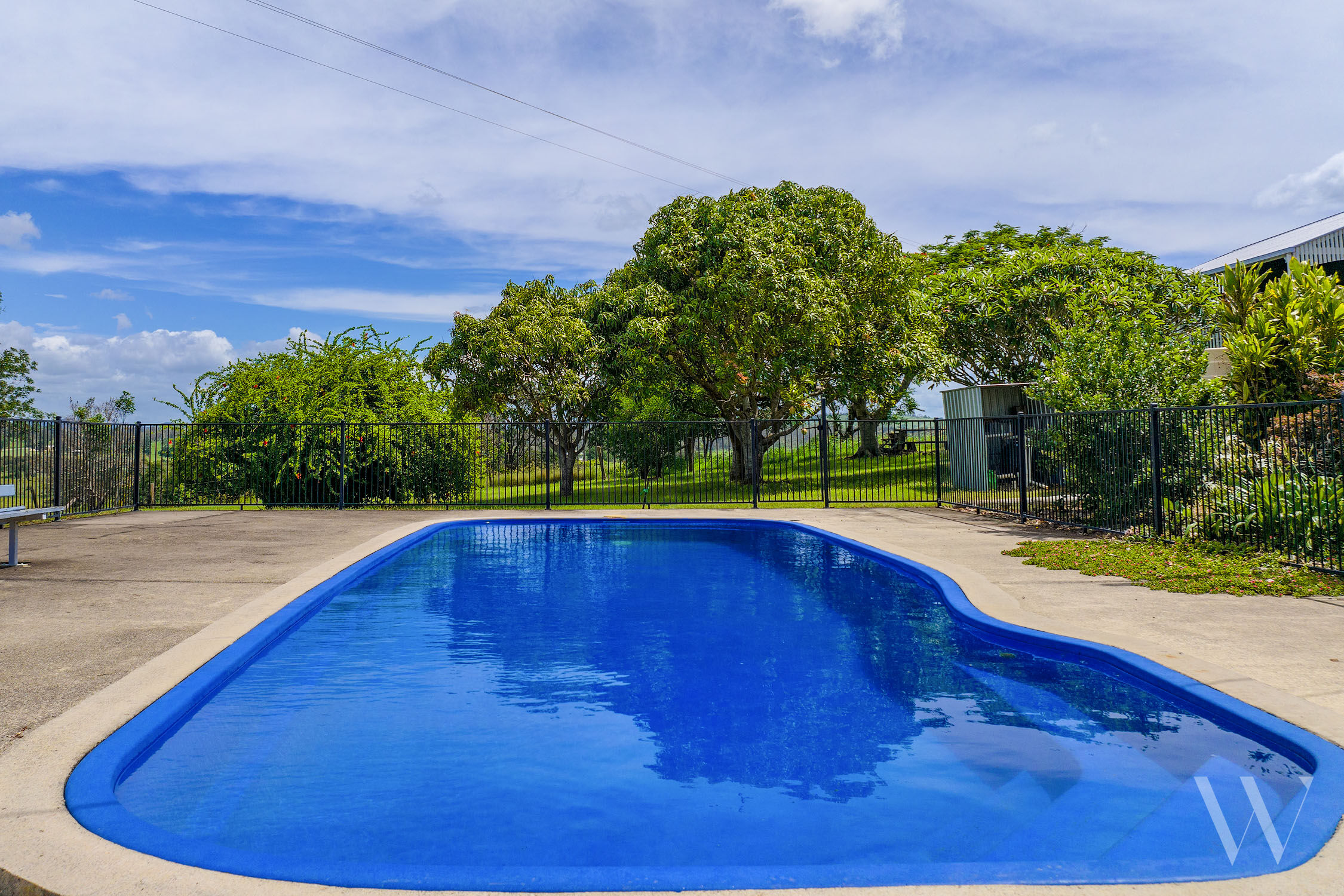 Outdoor Living: A wide verandah extends along the front of the house, overlooking the inviting swimming pool and well-maintained gardens. The pool, positioned at the front of the house, becomes a focal point for relaxation and leisure on the property.