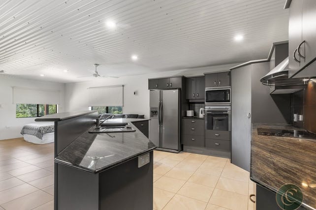 Set well back from the road, the home enjoys a tranquil setting surrounded by established citrus, mango, and macadamia trees, as well as easy-care gardens that add to the property's charm.