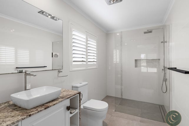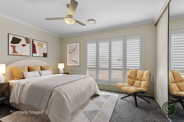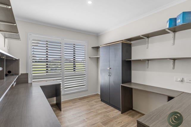 There are four spacious bedrooms, each featuring built-in robes, ceiling fans, and ducted air conditioning. The master suite is a true retreat, complete with a walk-in robe and a stylish ensuite with a stone-top vanity. A fifth bedroom, currently set up as a home office, provides the flexibility for remote work or additional guest accommodation. Throughout the home, plantation shutters add a touch of timeless elegance and privacy.