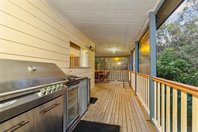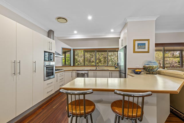 The easterly-facing kitchen includes stainless steel appliances with dishwasher and six plate gas cooktop, and electric oven. The established garden includes a kitchen-orchard on the eastern side of the home offering produce including stone fruit, oranges, lemons, grapefruit, guava and blueberries, as well as a vegetable garden.