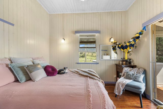 The main home on this property is a charming Queenslander featuring 3 bedrooms, one bathroom and open plan living area that offers expansive views over the property.