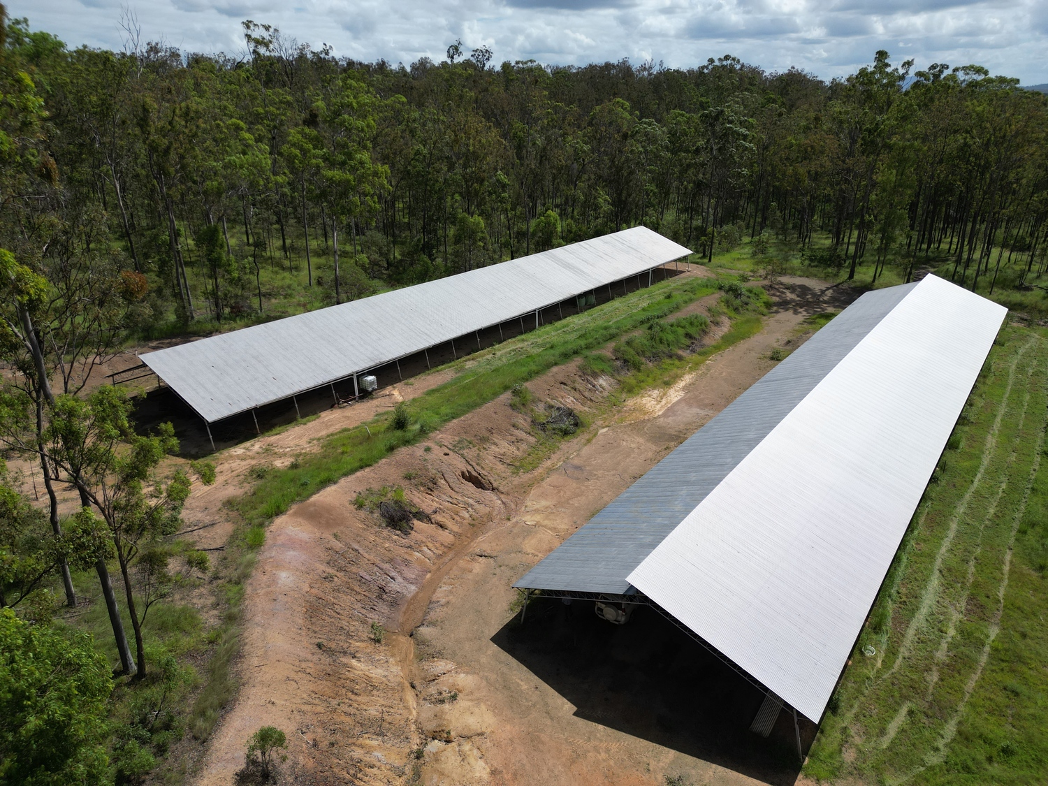 Rural Land With Two Large Sheds • Located at Glenwood, 40 minutes north of Gympie and 40 minutes south of Maryborough. • The property is only a few minutes to the Bruce Highway • 63.72 hectares (157.45 acres) in one freehold title • Approximately 17 hectares are cleared or could be cleared • Excellent house sites on the property overlooking a dam or taking in the views from an elevated area • Two large sheds are approximately 80m x 16m each • The sheds are designed as free range poultry sheds - they could be adapted for many uses • The property has four dams and access to Gutchy Creek which forms the property boundary on that side • Power should be available from Leggets Lane. • The sheds are very private and away from neighbours. • Property is boundary fenced with mostly split posts and barb wire & steel gates. • Sale price is $735,000 plus GST if applicable.