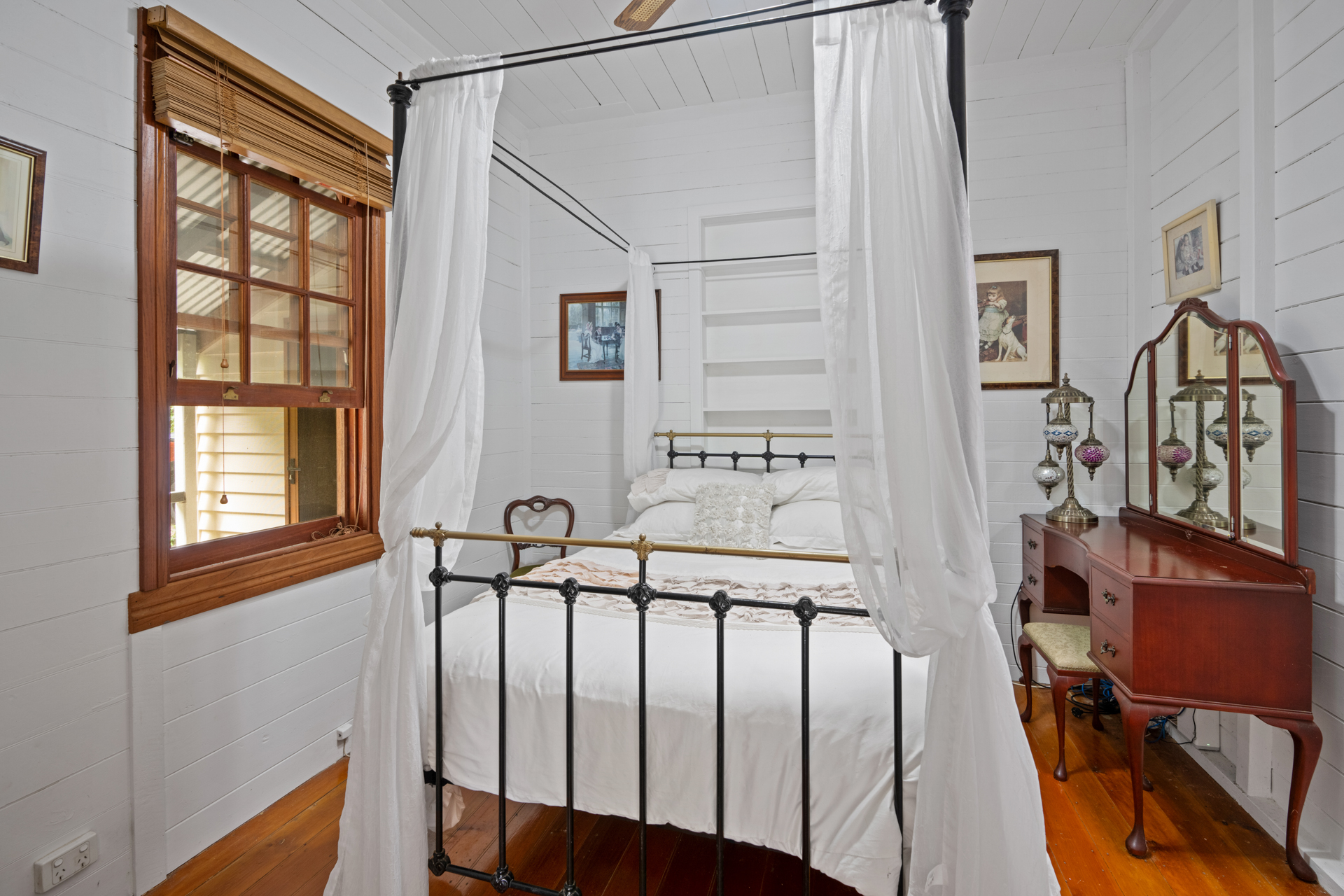 The Queenslander features: - Private front entry and wrap around verandah on two sides - Master bedroom with French doors opening onto private front patio. A/C,