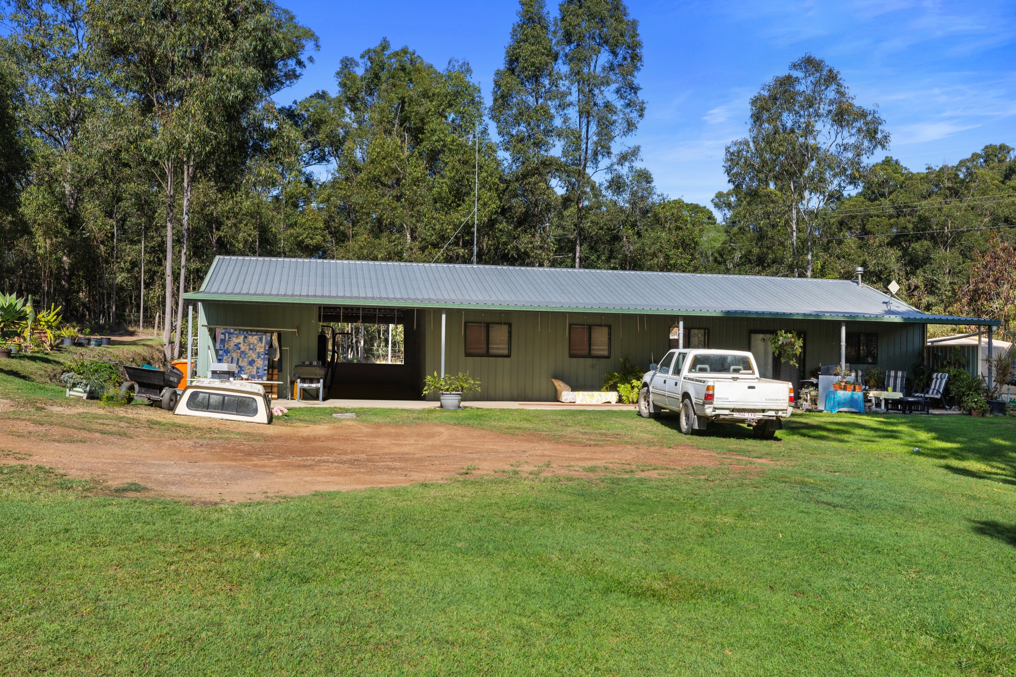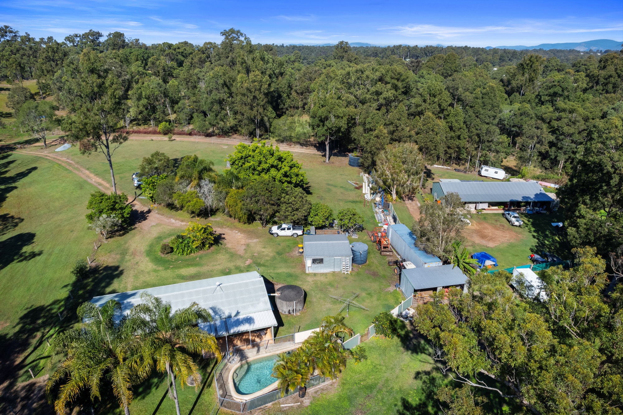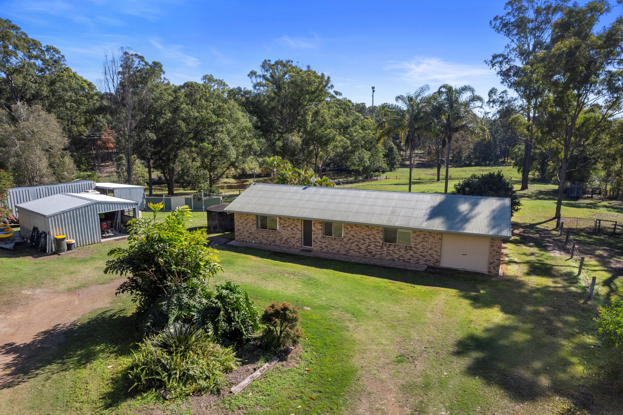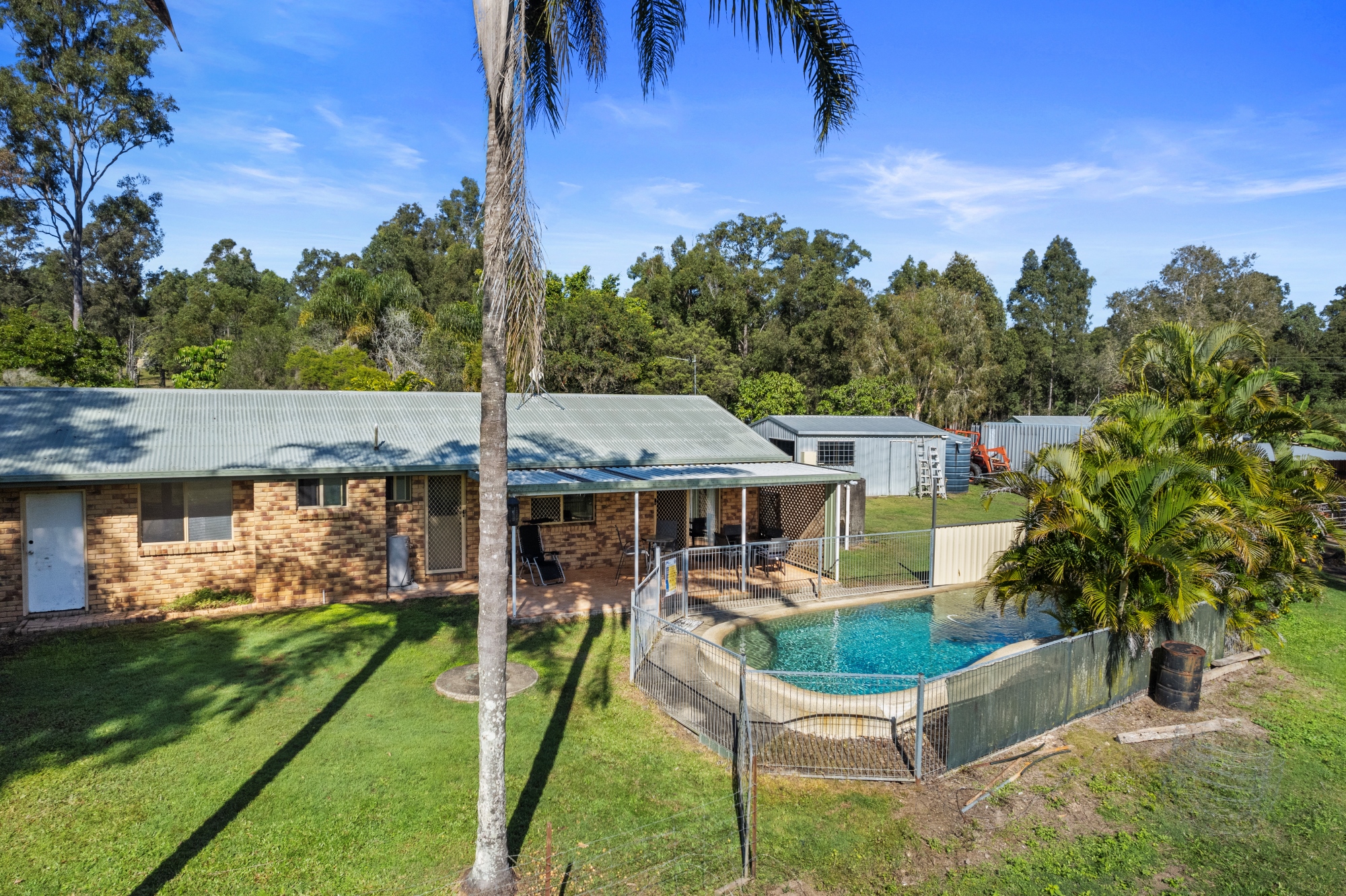 Lifestyle on Acreage A beautiful 10 acres to call your own with a brick home, family pool and so much more. The views from your verandah overlooking your paddocks and Dam are truly special. This property ticks all the boxes of the country lifestyle and just minutes to the heart of Gympie! The home is a charming chocolate brick build found at the end of your private drive off the main road. 3 bedrooms with 2 featuring built in robes and ceiling fans. The original modest kitchen includes plenty of cupboard space and a built in Westinghouse electric oven and stovetop. An open Living room and Dining area enjoys Air conditioning and opens out to your Verandah and resort style pool! The property features a second liveable dwelling with a 2-Bedroom Colourbond shed fully equipped with Kitchen and bathroom. The Sheds between the main home and this dwelling provide privacy as well as the split separate driveways. There is also an expansive verandah 3.6m wide that overlooks the Dam and the property. This shed is ideal for an income source or great for other members of the expanded family to stay close. For the lovers of the outdoors, your property is ideal for a couple of horses or cattle to roam around. Not only is the property fully fenced, there is also a steel set of livestock handling yards complete with loading ramp. The Dam at the base of the property isn’t just there for the scenic view, it also provides stock water and a great place for the kids to spend the holidays kayaking. Property Features: • 4 Hectares (9.88 Acres) • 3-Bedroom brick home • Ceiling Fans and Built in Ward robes in 2 of the 3 bedrooms • Original, functional kitchen features Westinghouse electric oven, rangehood and 4 burner stovetop • Airwell Air Conditioner in spacious Living area by dining and kitchen • Dining room opens out to large verandah overlooking pool and property • Resort style pool by home overlooked by back verandah • Expansive Colourbond liveable shed with power, plumbing, 2 bedrooms, kitchen and bathroom. It also has a split separate driveway and privacy between main house. Shed is 60ft x 30ft with a 3.6m verandah overlooking property • 2 bay high roof carport style shed adjoining 40ft Shipping container for storage (2.9m high, 2.4m wide)