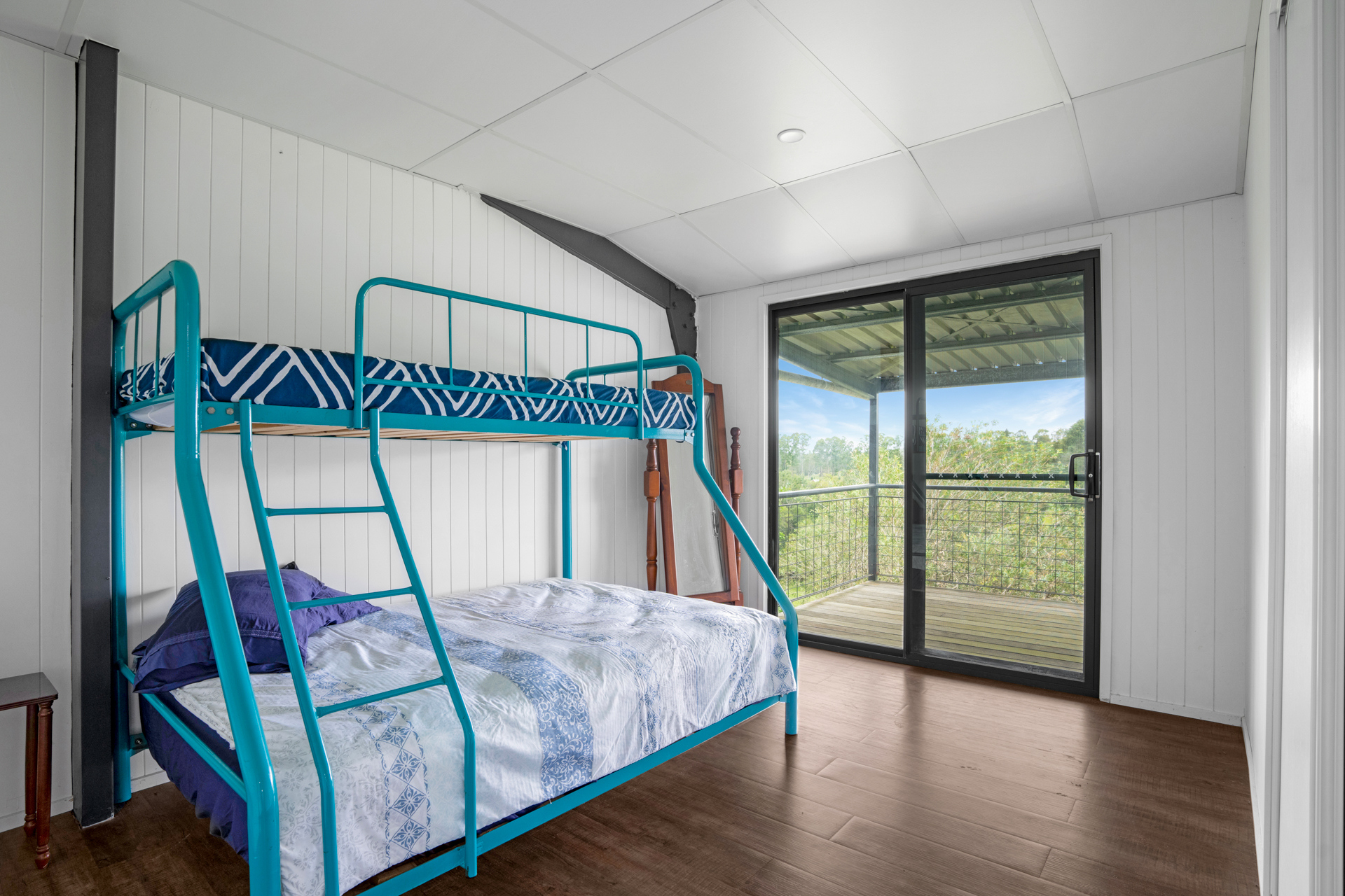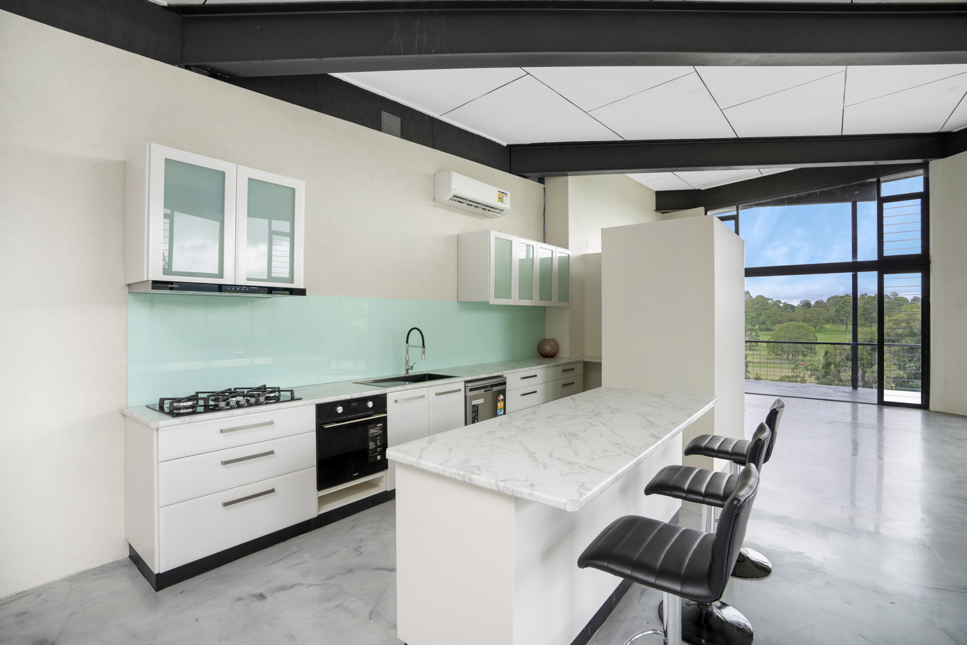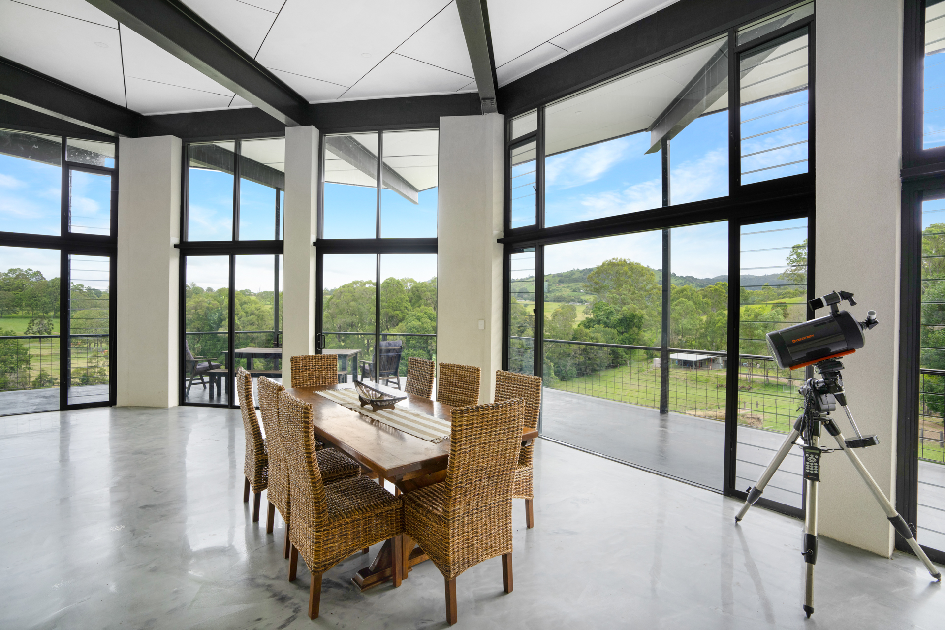 Upstairs there are 3 bedrooms which open onto a full length balcony with captivating rural views. There is also a study, bathroom and separate toilet.