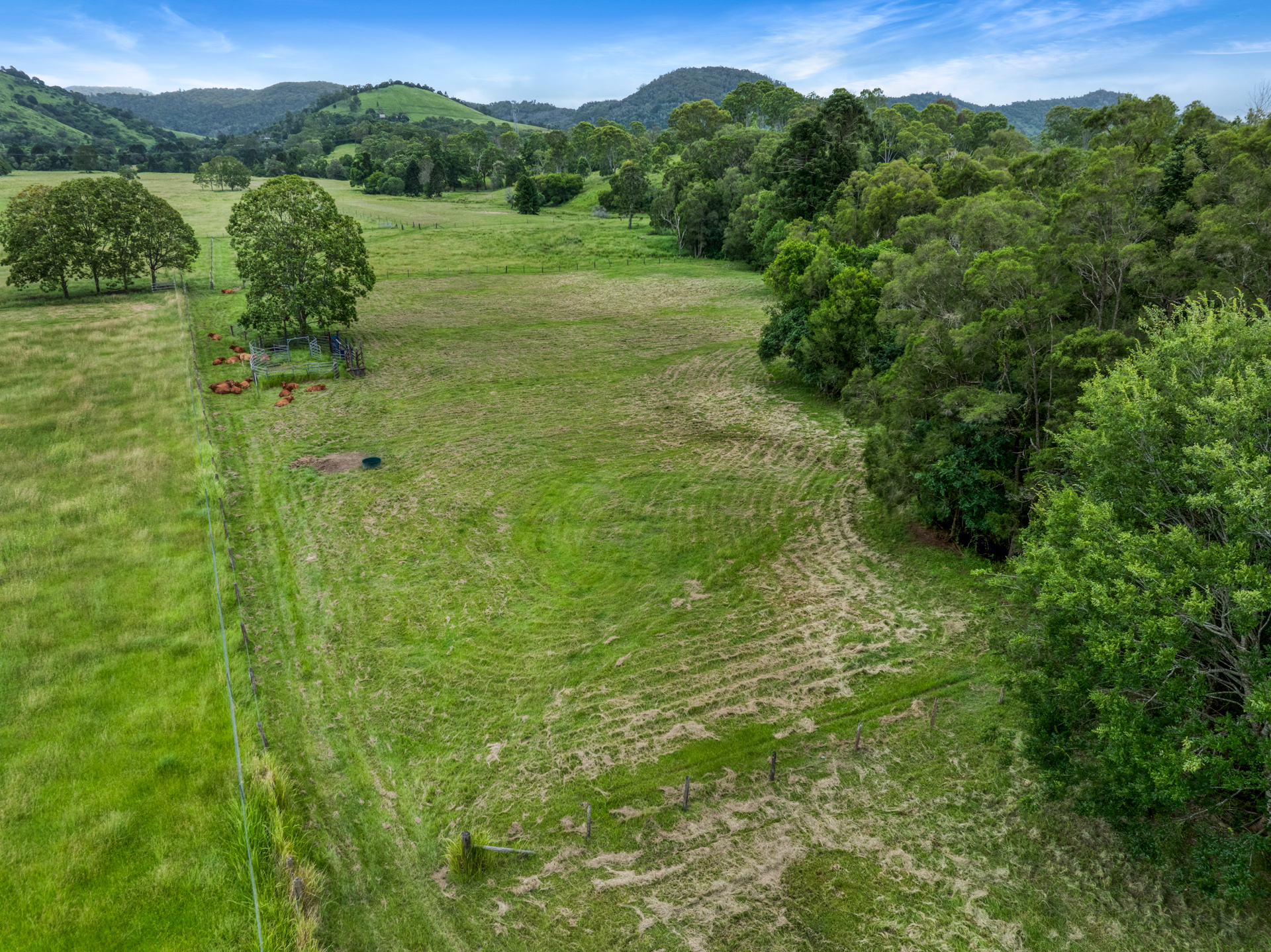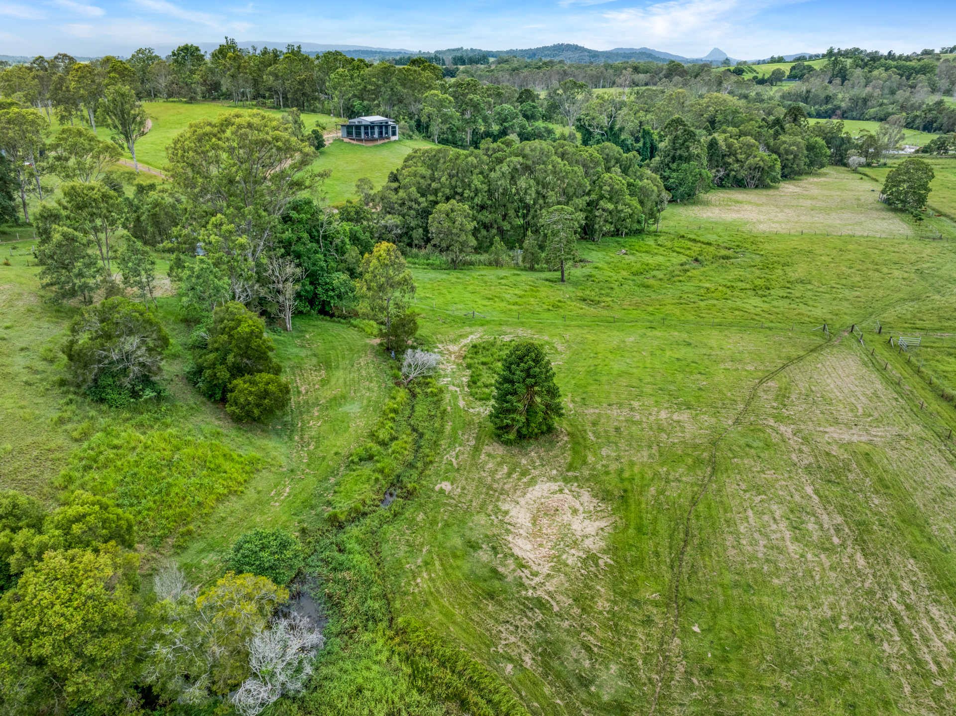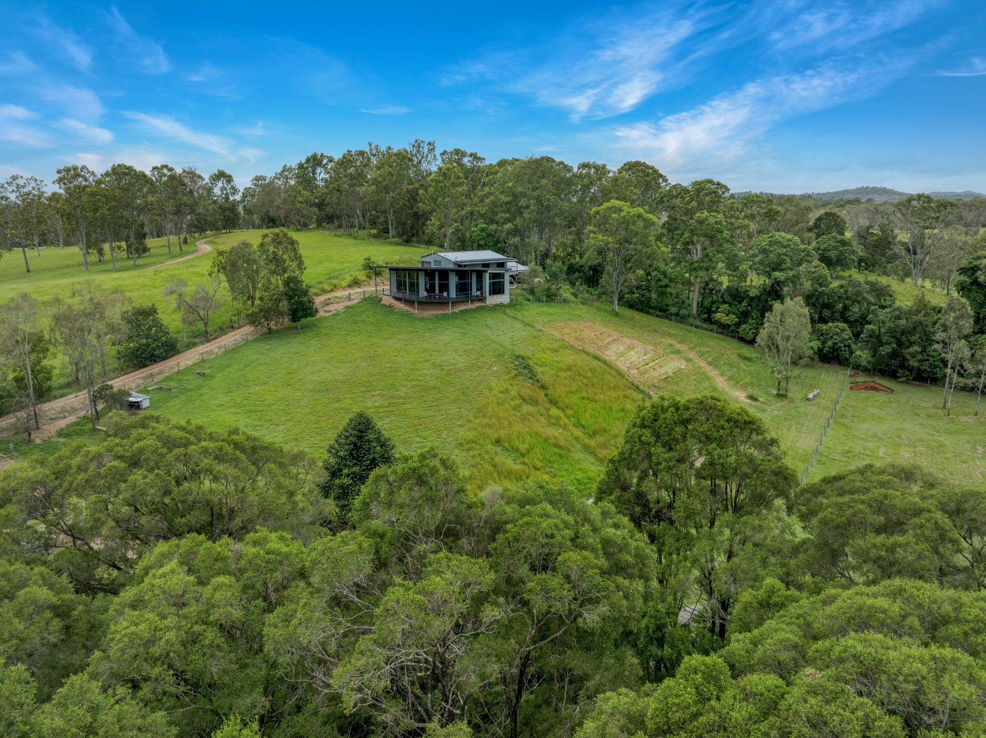 If cattle are your thing there is a set of cattle yards and loading ramp and a permanent creek running through the entire property giving access to water in all 6 paddocks. In very dry times the last end of the creek runs underground but only pass the bottom bridge. 6 fully fenced paddocks with interconnecting access plus 3 smaller ones below the house with dog proof fencing.
