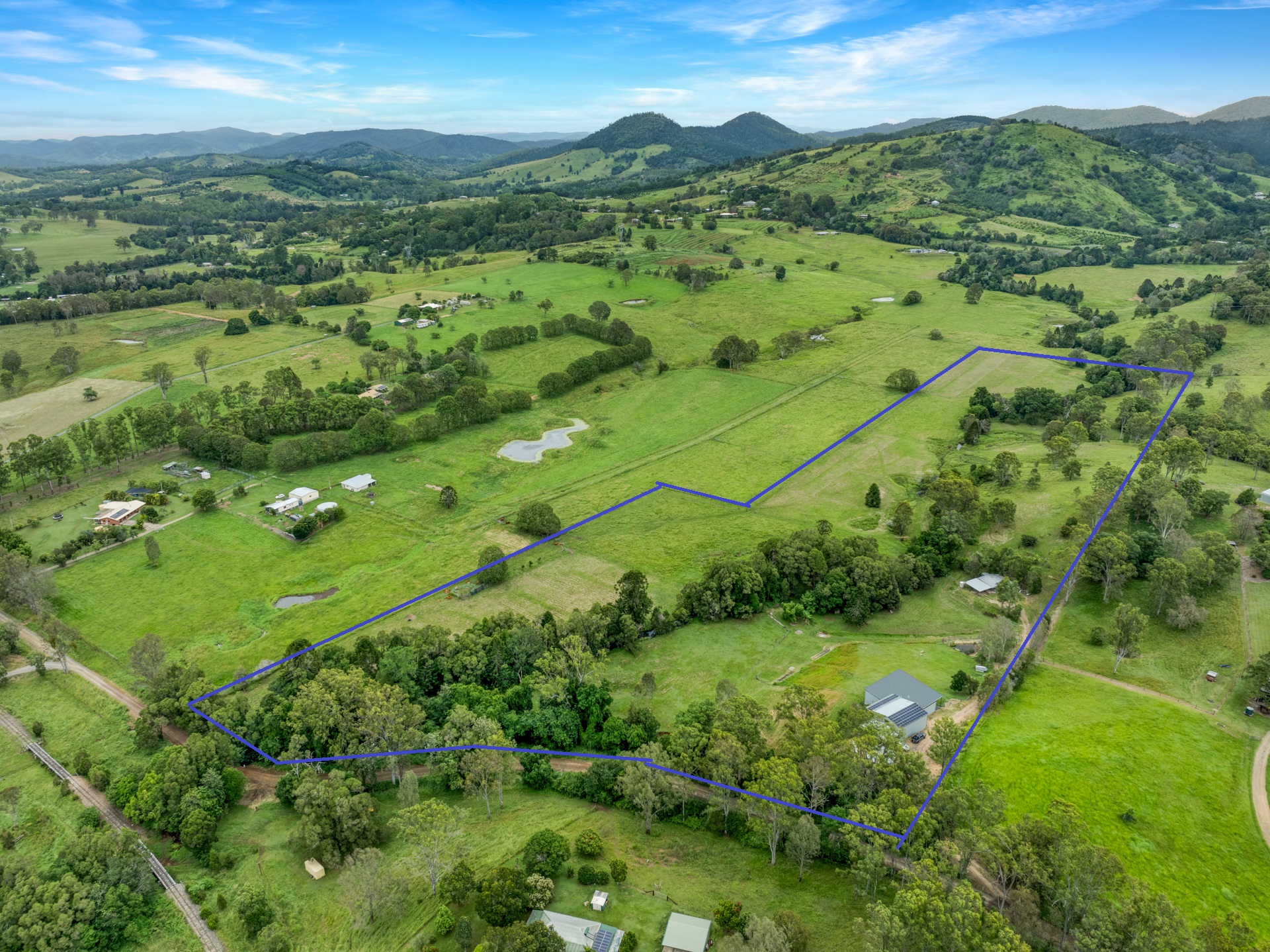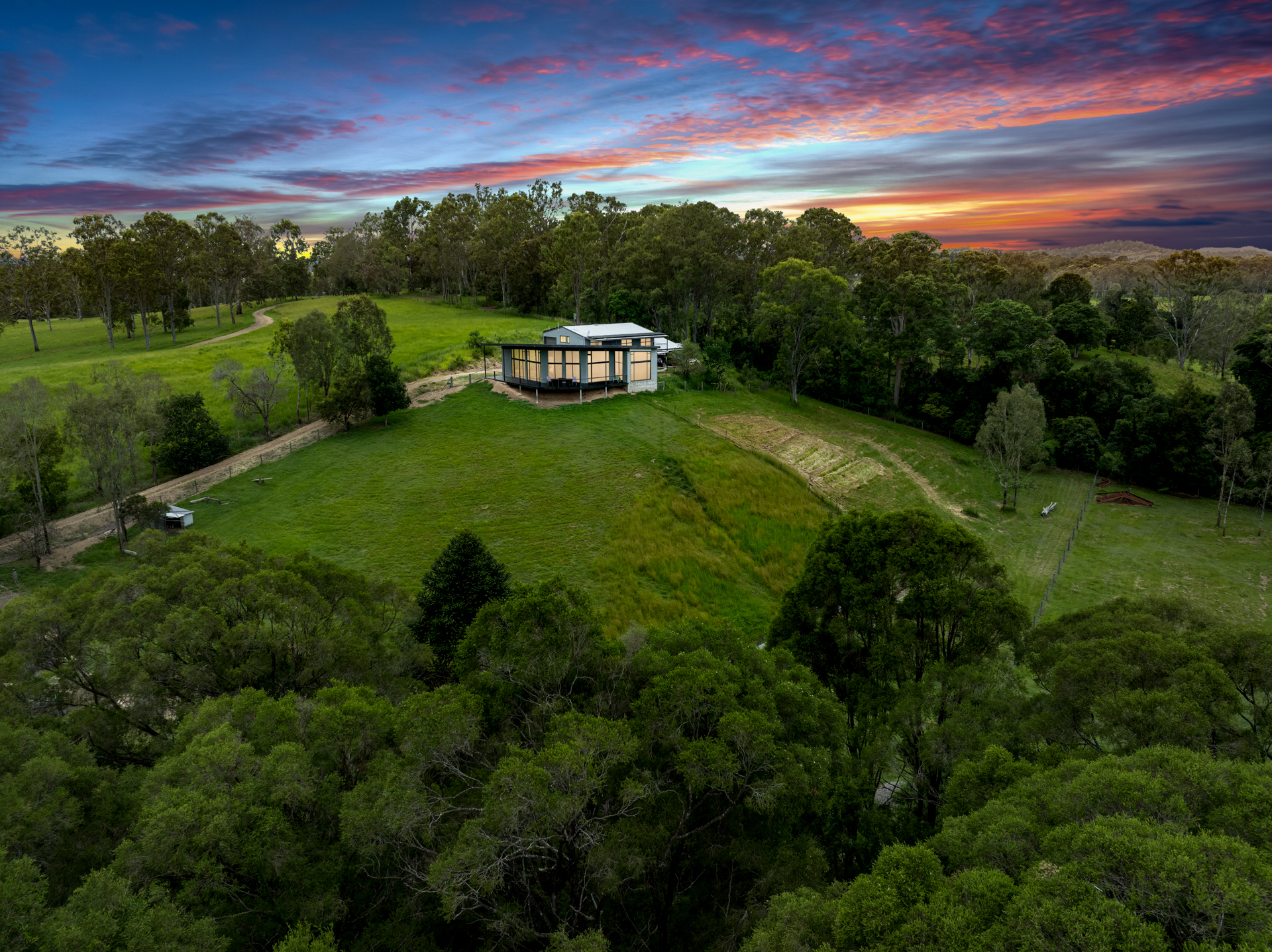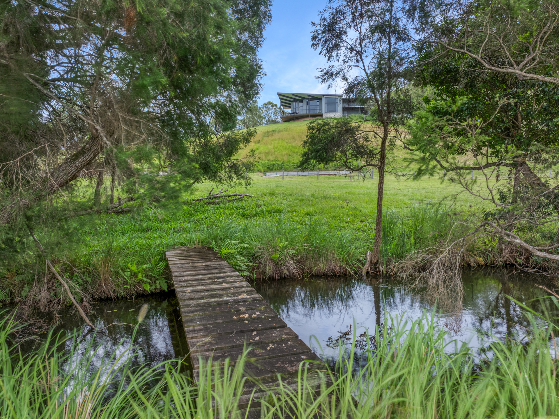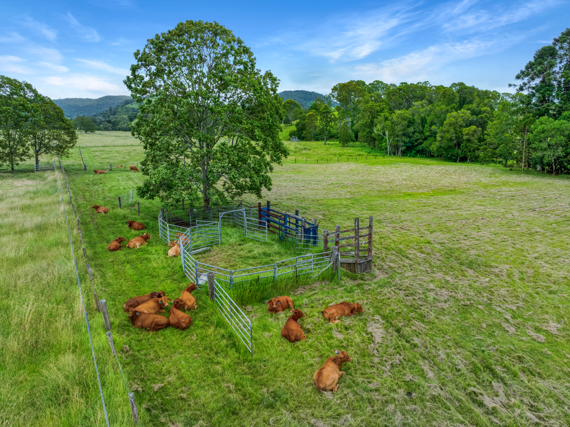 If cattle are your thing there is a set of cattle yards and loading ramp and a permanent creek running through the entire property giving access to water in all 6 paddocks. In very dry times the last end of the creek runs underground but only pass the bottom bridge. 6 fully fenced paddocks with interconnecting access plus 3 smaller ones below the house with dog proof fencing.