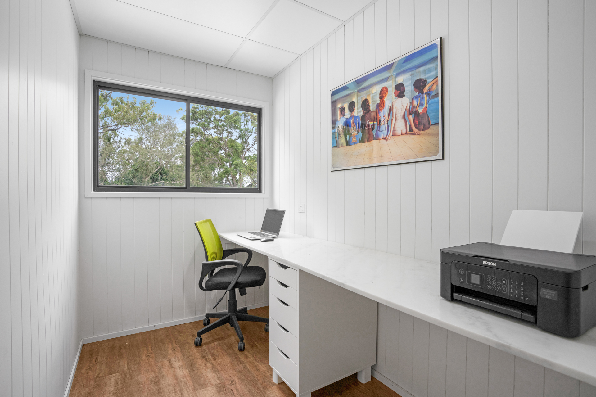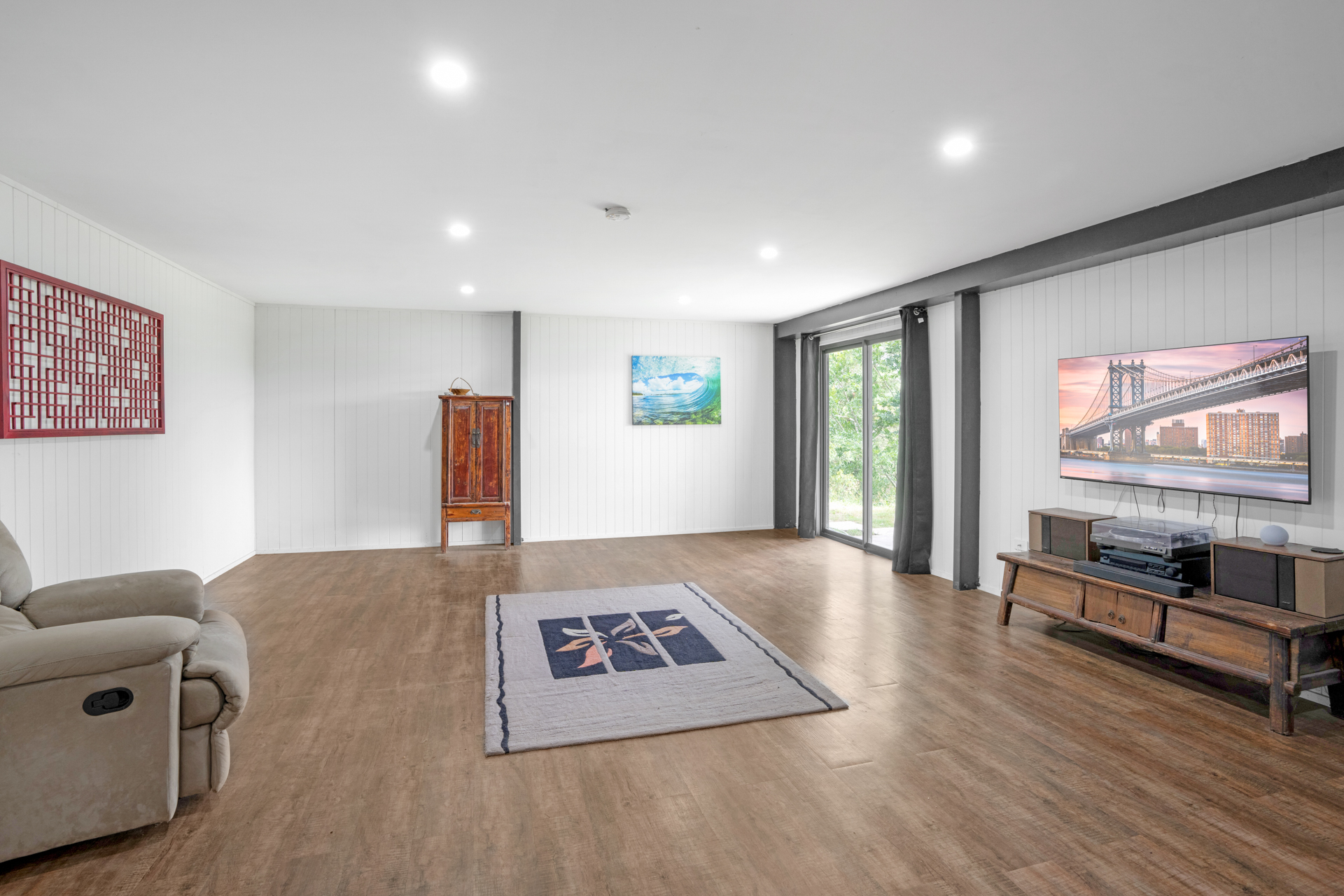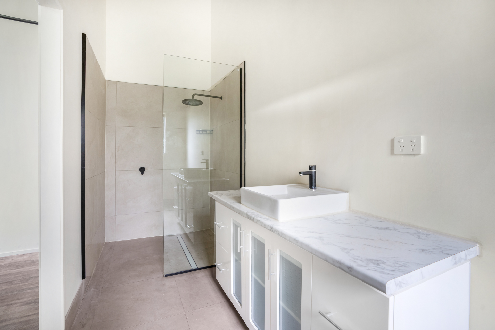 Downstairs hosts a massive open family/ games room with access to covered patio which creates the perfect spot to enjoy a morning coffee. This area is serviced by guest powder room and the laundry (which also houses the power system for the home). The remaining section of the original building has been left as a RV/ Caravan parking space measuring 4.1 x 12 m with high access roller door 3.1 w x 4..5m ht. The parking also includes a double carport adjoining the home.