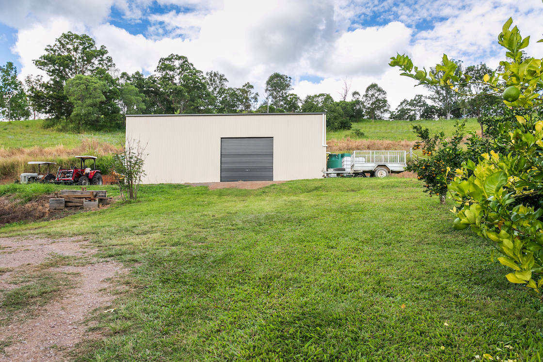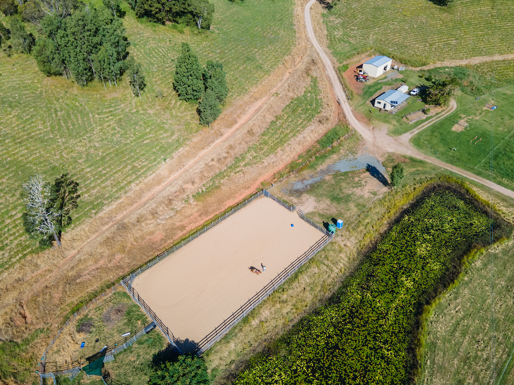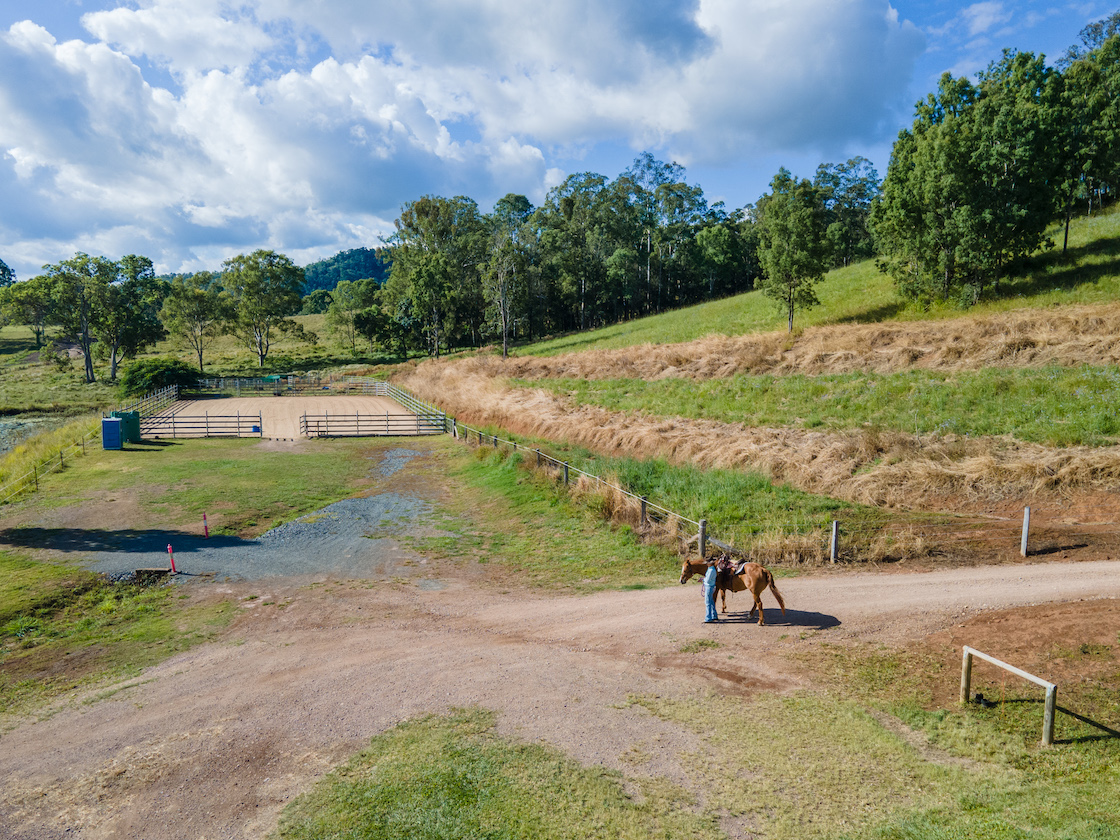 The property is entirely off-grid with excellent infrastructure, including a large shed (7m x 13m with 4.5m height) ideal for storage or workshop activities, a garden shed, a dedicated ranch riding trail paddock with equestrian obstacles, a purpose built cattle working sand arena measuring 25m x 45m, cattle yards, ramp and hitching rail. In addition to the rain water storage, there are two dams (one spring fed) servicing the property and a creek, providing ample water, the land is rich and fertile. There is a variety of established fruit trees including avocados, mangos, lemons, limes, oranges, bananas, mulberries, and passionfruit.