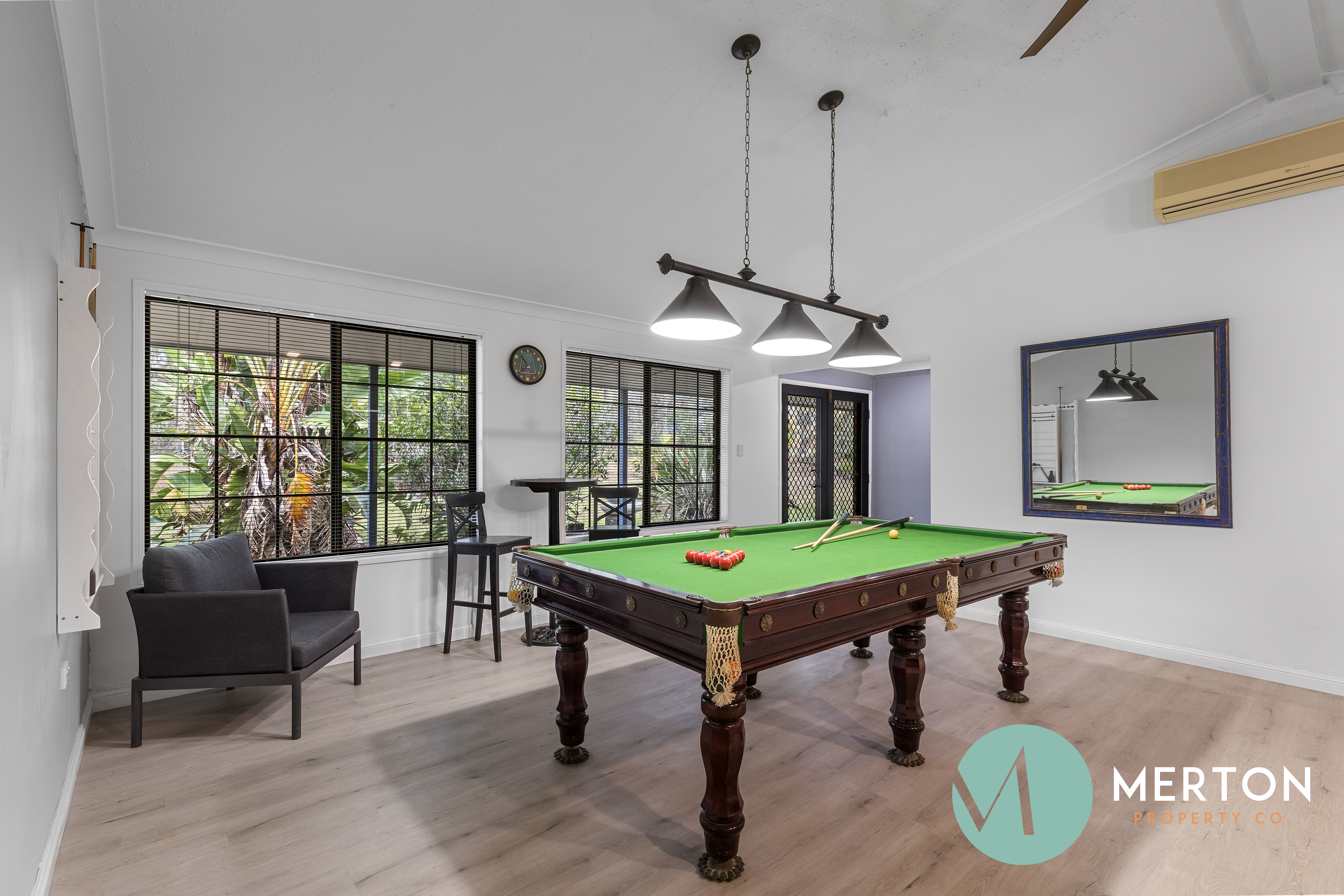 The first lounge room is a showstopper, with its expansive size, split system air conditioning, ceiling fan, and large windows that add natural light. This room is versatile enough to accommodate a full lounge suite and still have room for a pool table or additional dining area.