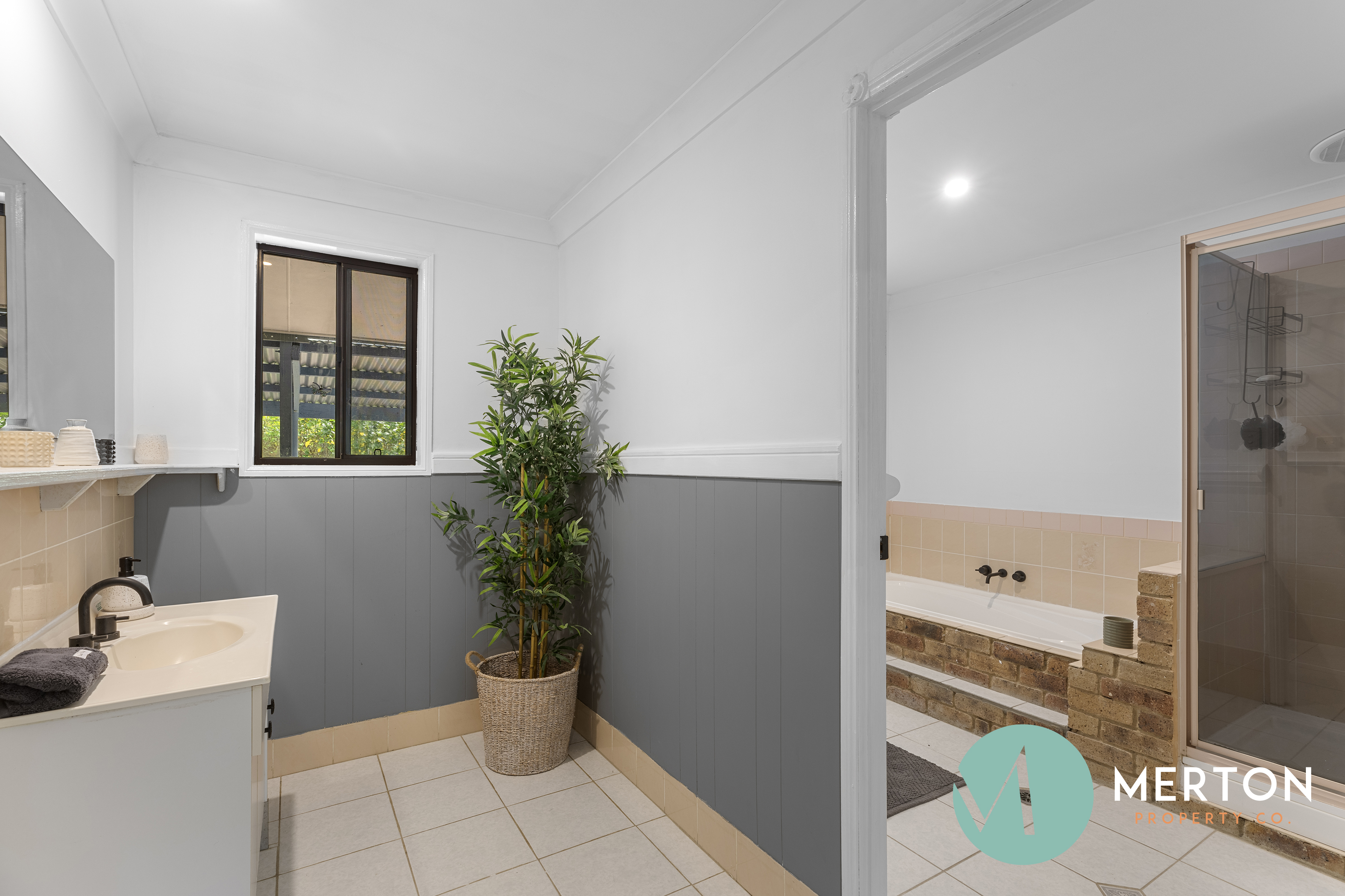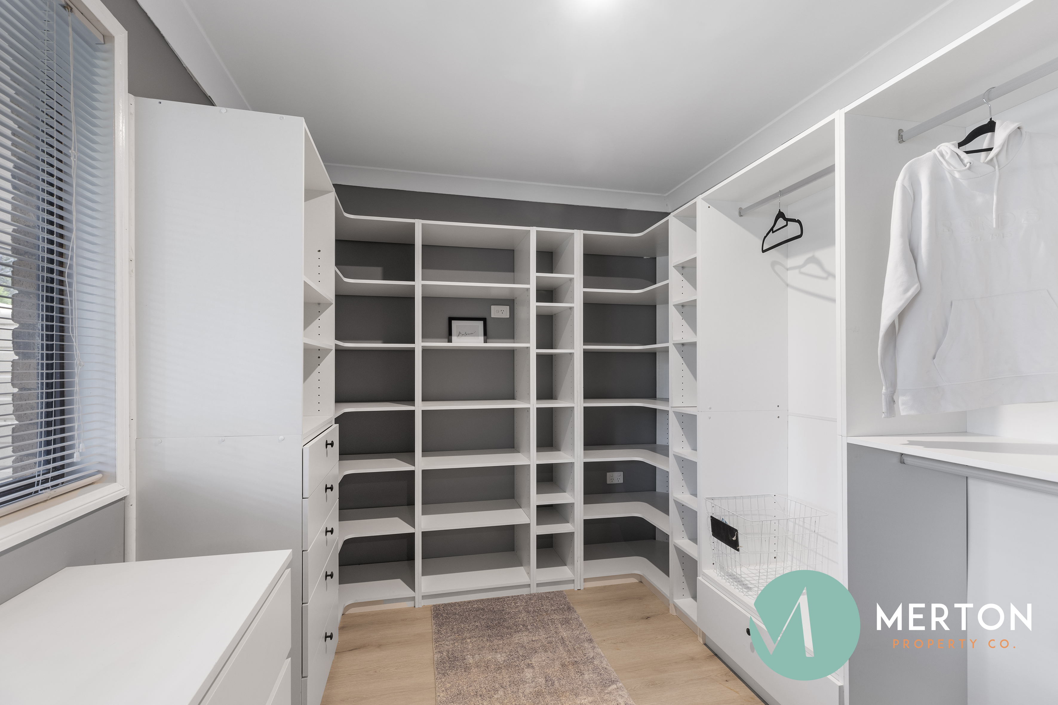 The kitchen is a dream, offering abundant cupboard space, a large fridge space, a walk-in pantry, an electric cooktop, and a double electric oven. It flows seamlessly into the dining area and then into the second lounge room – the perfect parent’s retreat, complete with a ceiling fan and charming bay windows. The adjacent master bedroom is equally impressive, featuring bay windows, ceiling fan, LED lighting, a huge walk-in robe, and a stunning ensuite with a shower, bath, vanity, and toilet.