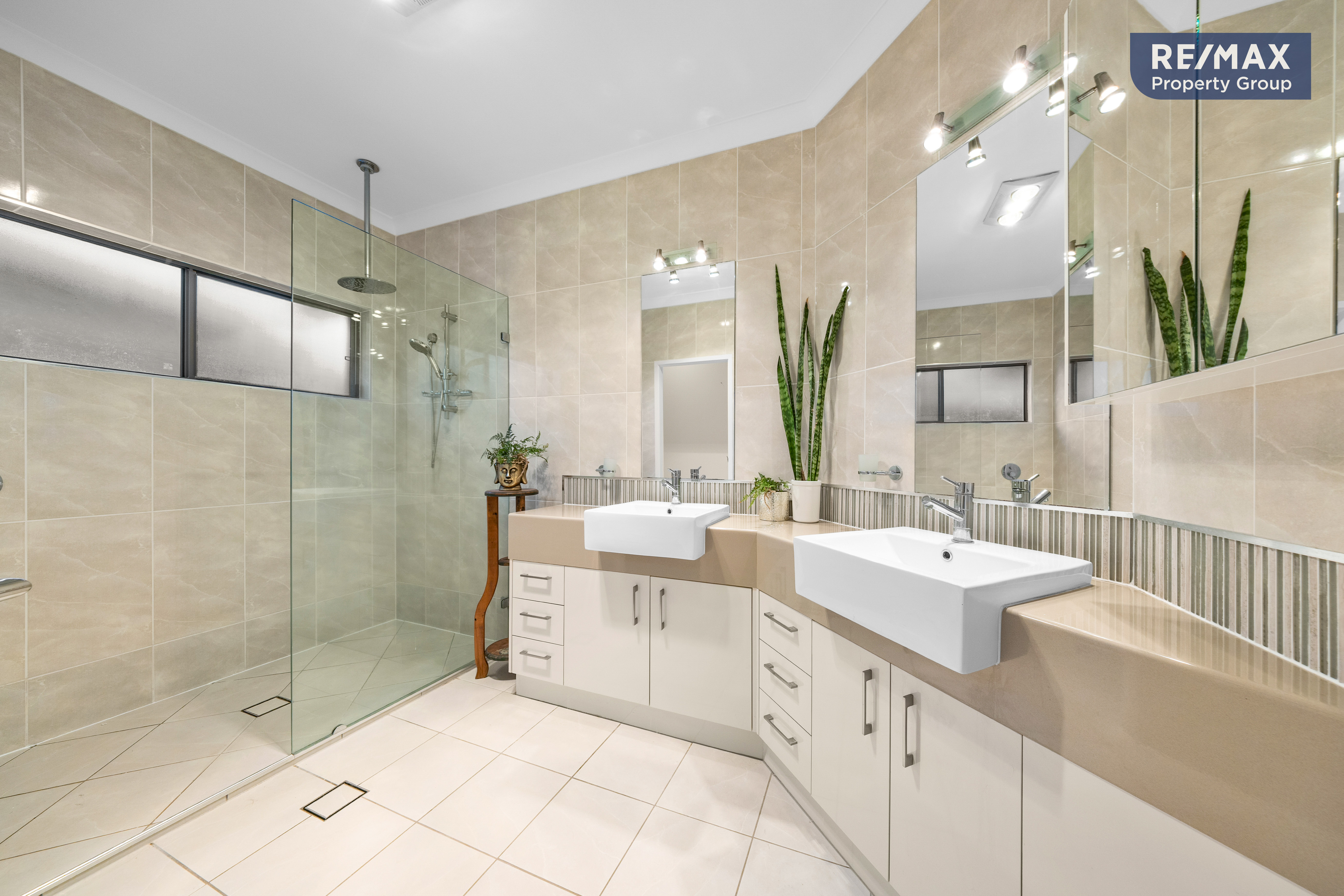 - Open plan living with tiled flooring throughout main area - Corner stacker sliding doors opening up the living and dining area - Tiled alfresco equipped with wet bar and quality pull down screens - Stylish window coverings - Vinyl planking through bedrooms and family room - Spacious Master Bedroom with access to the garden - Master ensuite includes walk in shower, separate toilet, twin vanities, floor to ceiling tiles and plenty of cupboard space - Three additional bedrooms with built in wardrobes - Main bathroom with shower, bath and separate powder room - Designated internal laundry room with doorway out to clothes line - Two car garage with electric roller door, storage cupboards, epoxy floor and internal access to home - Fully fenced secure yard with exposed aggregate driveway - Landscaped garden featuring fruit trees and mini putting green - Garden shed