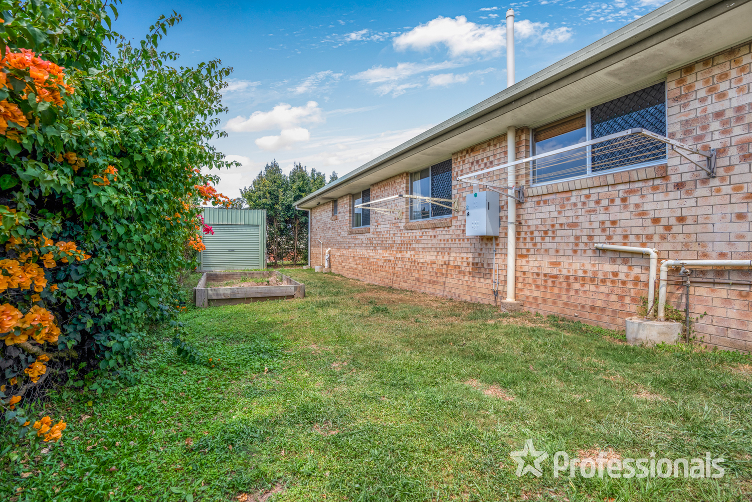 • Double lockup garage with laundry area, one door being electric • Fenced yard, 3m x 3m garden shed with 6ft clearance