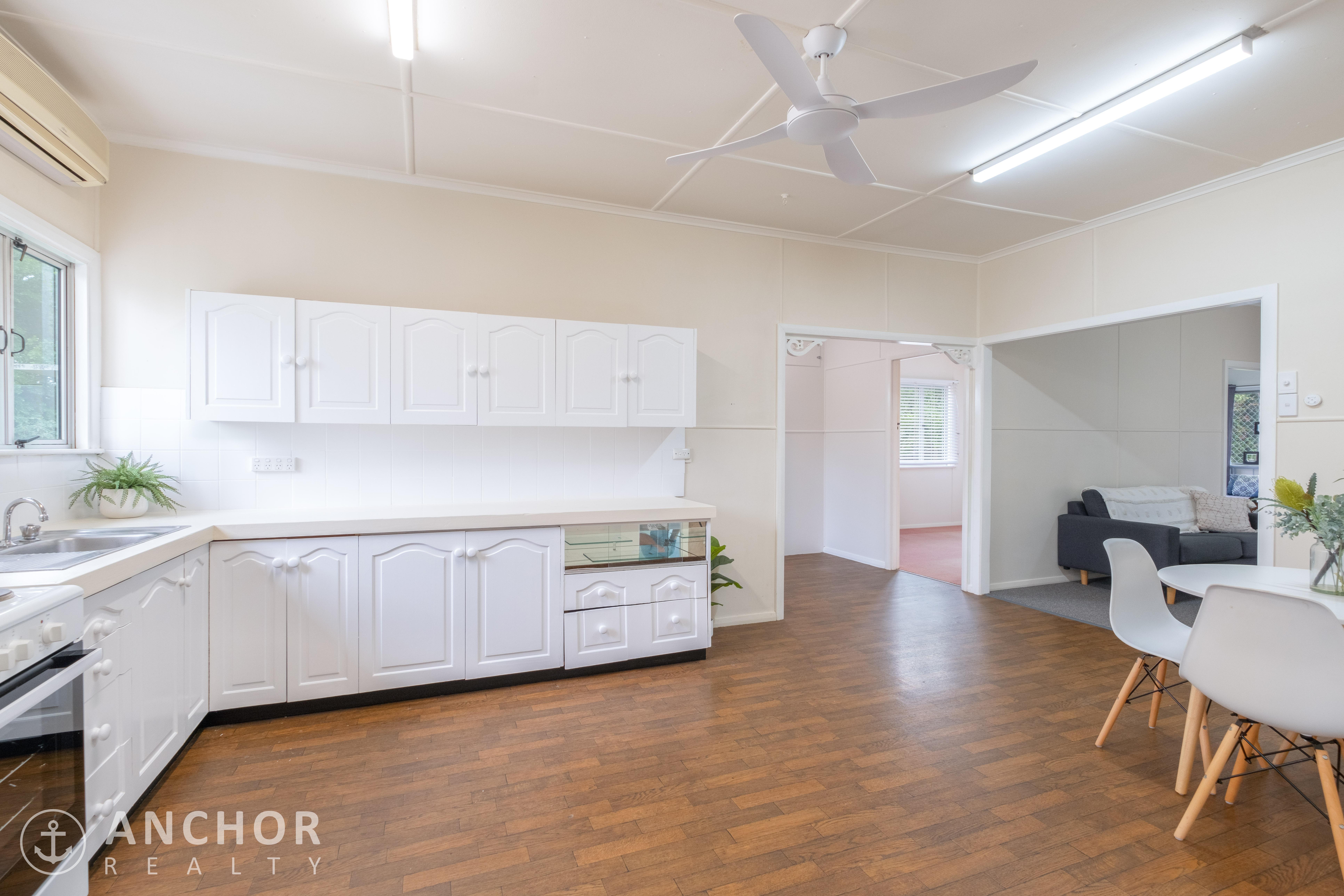 Step into a world of comfort and character with this delightful 4-bedroom home that exudes a warm and inviting atmosphere from the moment you arrive. Nestled in a convenient location, this property offers the perfect blend of functionality and charm for a growing family. As you enter, you'll be greeted by the timeless appeal of this cute home, featuring 4 genuine bedrooms and a family bathroom designed for practicality and style. The heart of the home lies in the huge kitchen, complete with air-conditioning, making it a chef's dream and a central hub for family gatherings. The comfortable separate lounge room is a cozy retreat, enhanced by security screens that offer peace of mind and a sense of security. Imagine relaxing in this space after a long day, enjoying the tranquility and privacy it provides. Stepping outside, the large backyard beckons, providing ample space for outdoor activities and entertainment. With gated access to the football field at the rear, also known as the leafy Leprechaun Park, you'll have a green oasis right at your doorstep. Let the kids run and play to their heart's content, or simply enjoy the serene views of the park while sipping your morning coffee. This property boasts a new roof and secure storage under the house, ensuring that you have everything you need right at your fingertips. Rest easy knowing that this flood-free property is not only a safe haven but also a canvas for endless possibilities.