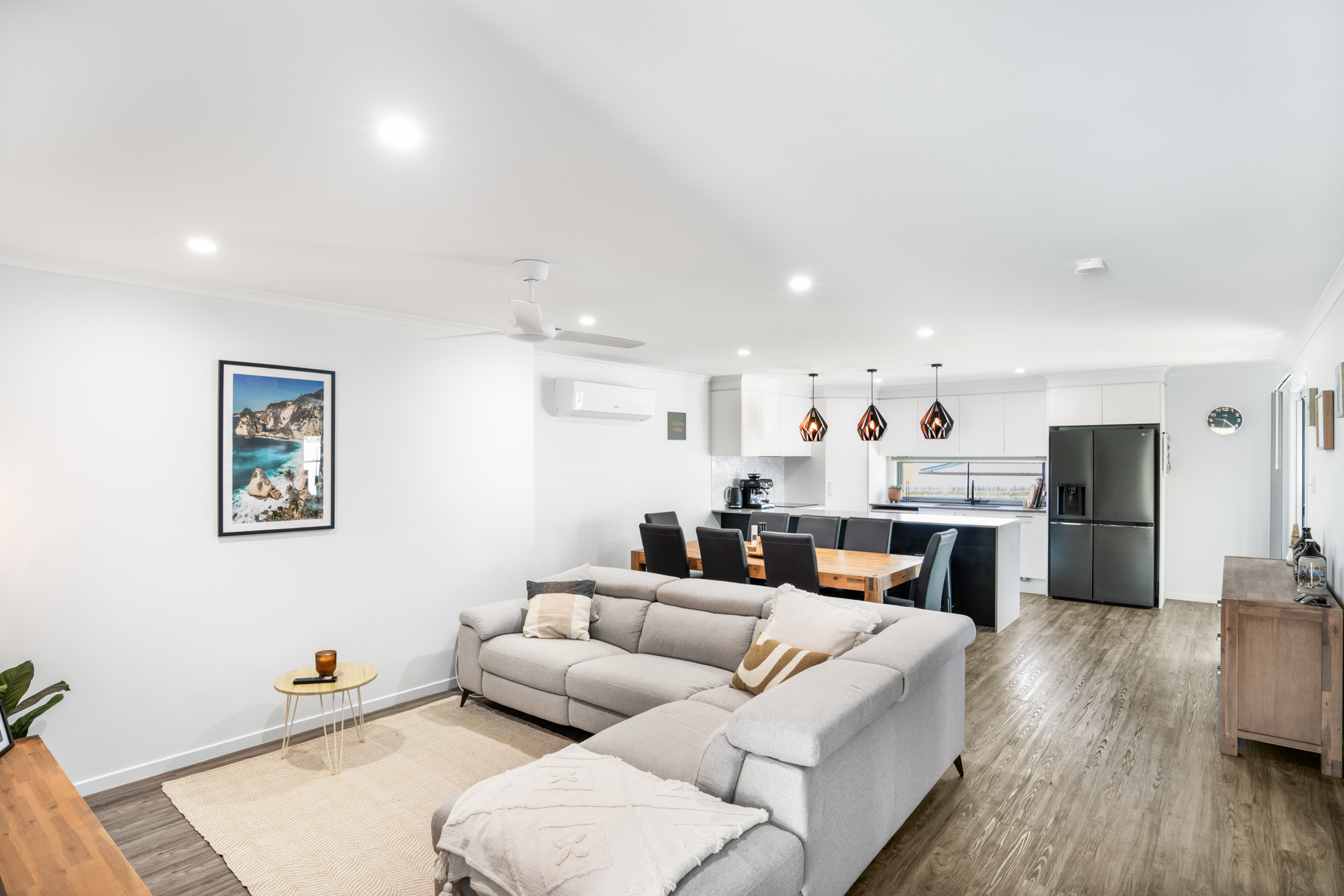 The property boasts: - Open plan kitchen, dining and lounge with A/C.