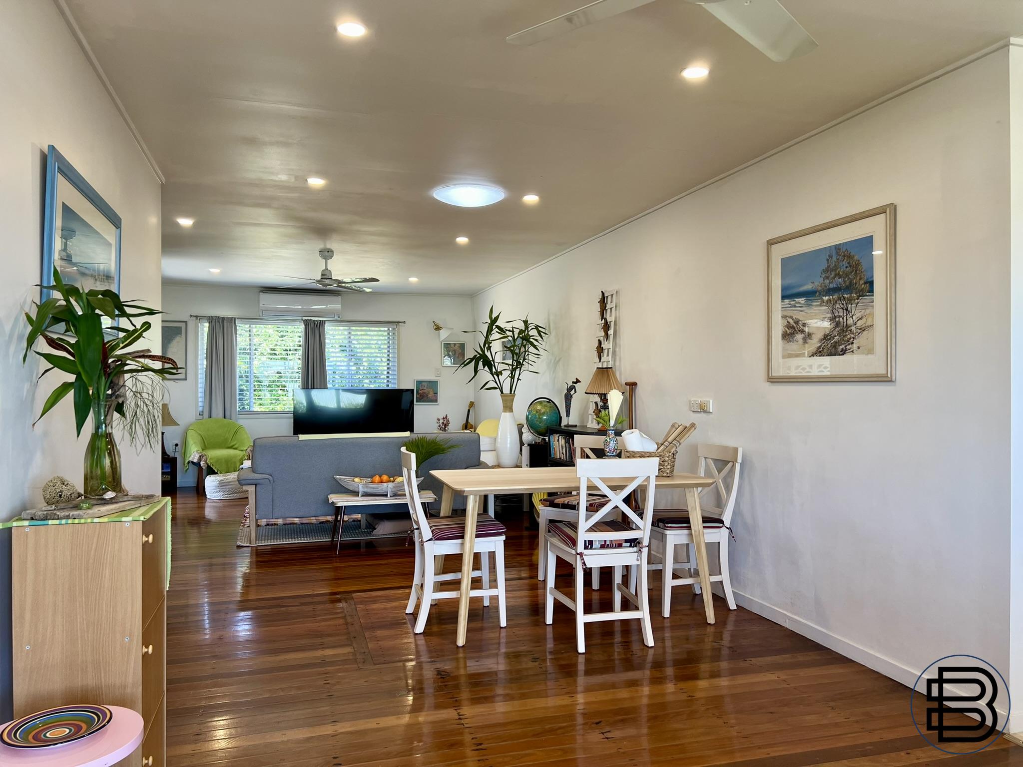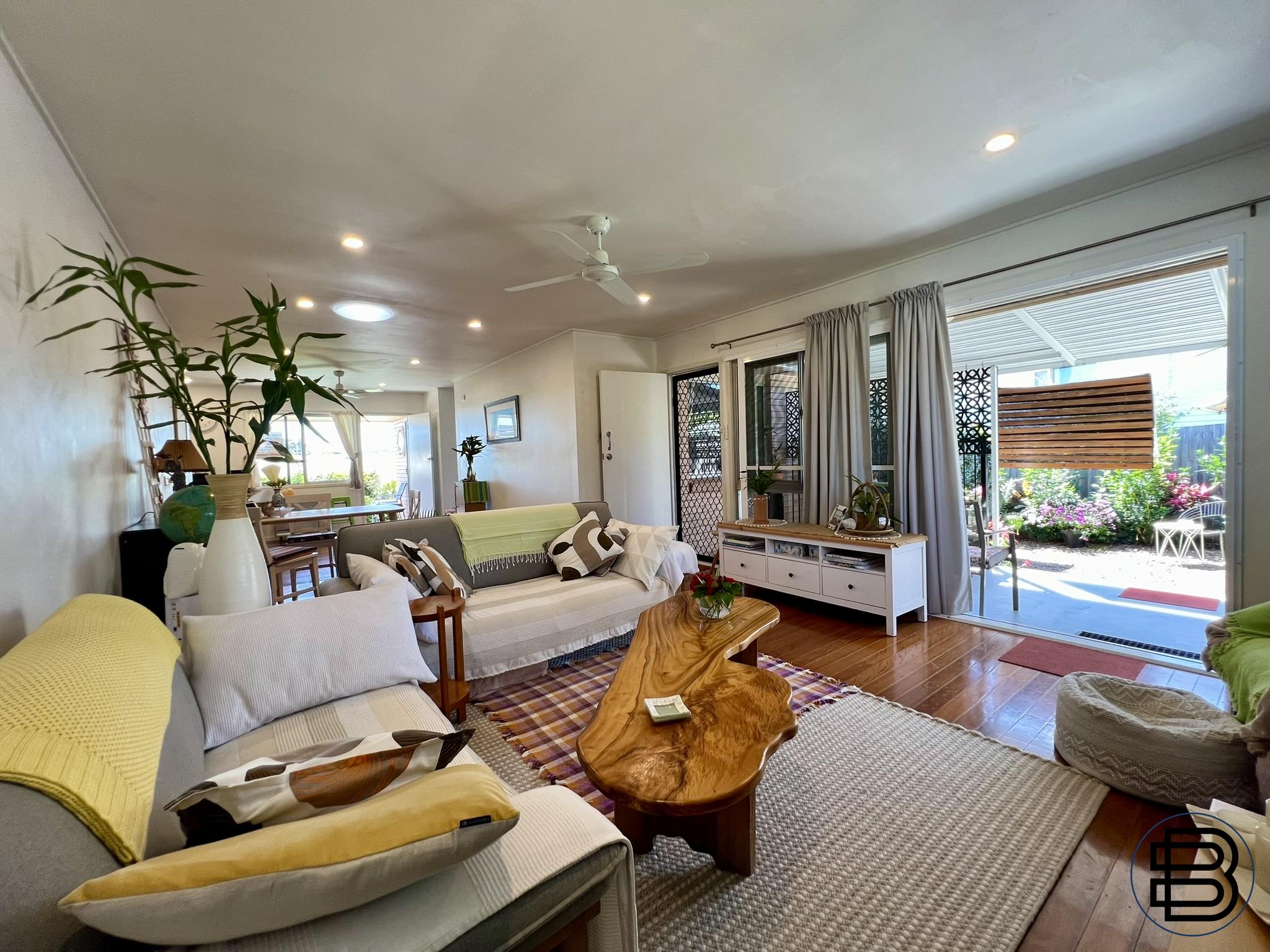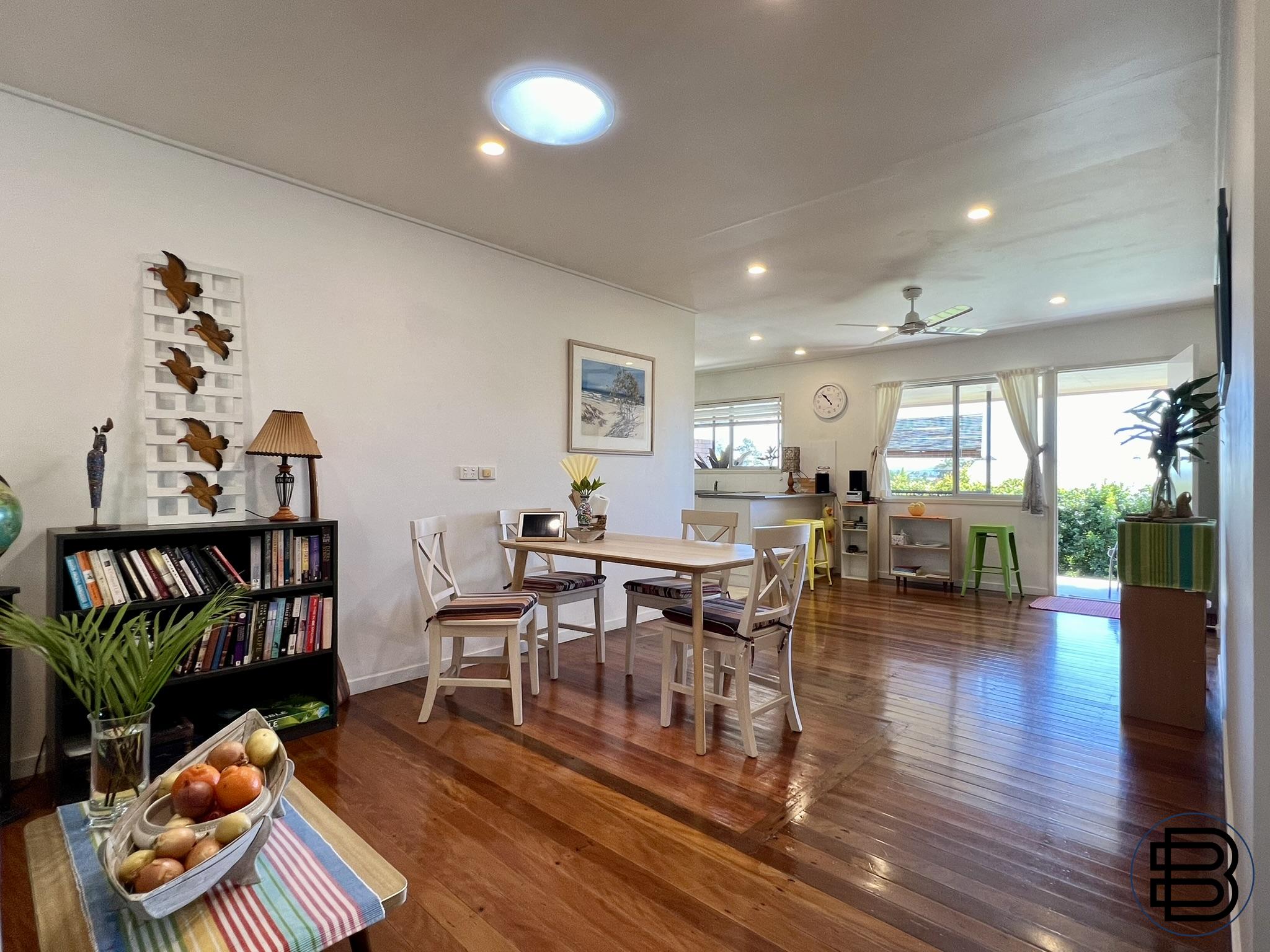 The Property: - Charming home with 3 bedrooms, 1 bathroom, 1 car garage, large laundry storage - Landscaped gardens, garden shed, private and fully fenced, with hinterland views - Grassed lawns front and back with 2 patios for entertaining and afternoon sunsets - Open plan design, room for a second bathroom/ensuite if needed, space to grow - Energy efficient fans and lighting, air-conditioned bedrooms, new stove in kitchen - Well-built brick veneer, tallow wood floors, hardwood framing, & concrete roof tiles