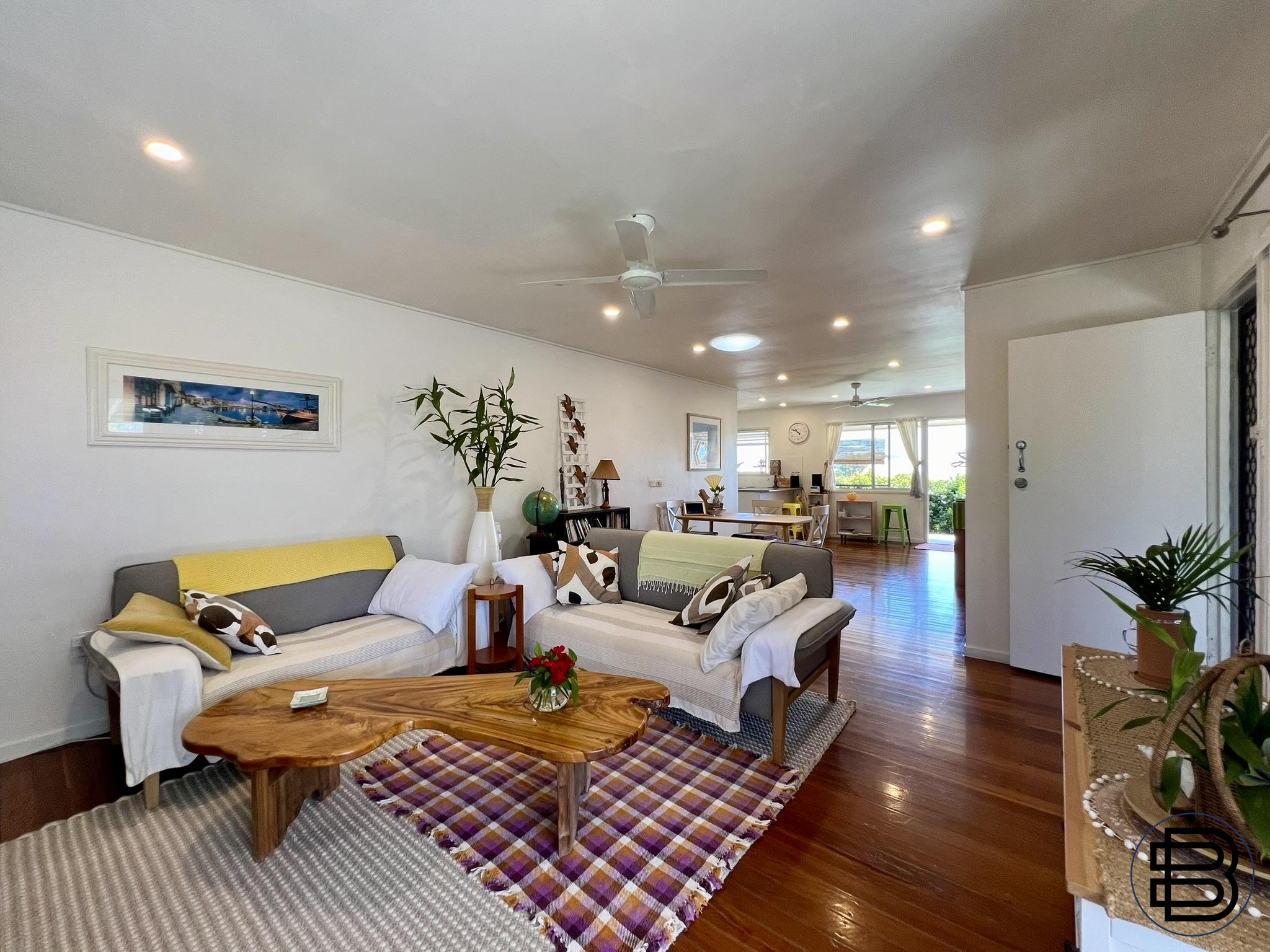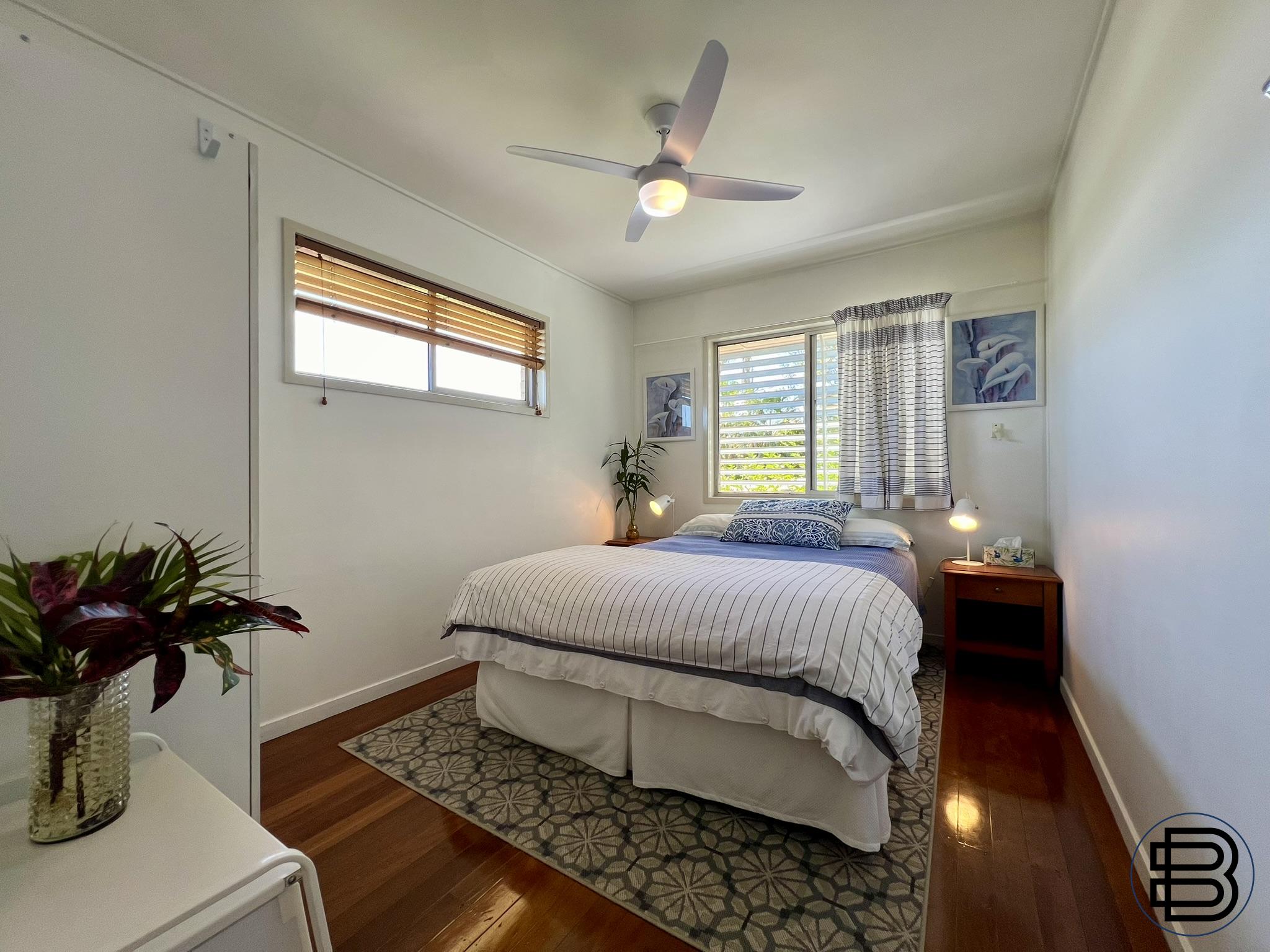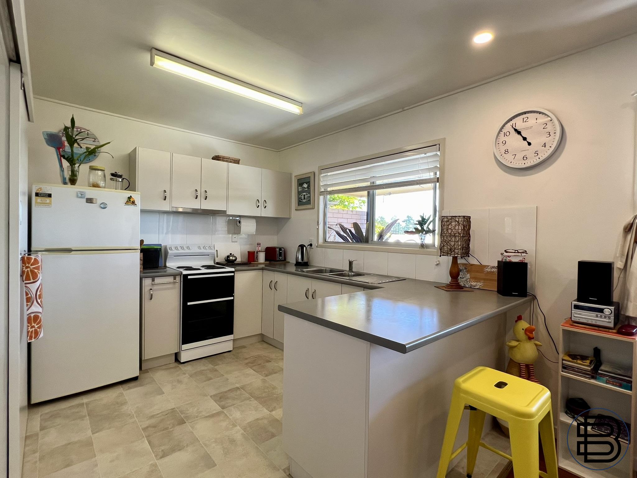 The Property: - Charming home with 3 bedrooms, 1 bathroom, 1 car garage, large laundry storage - Landscaped gardens, garden shed, private and fully fenced, with hinterland views - Grassed lawns front and back with 2 patios for entertaining and afternoon sunsets - Open plan design, room for a second bathroom/ensuite if needed, space to grow - Energy efficient fans and lighting, air-conditioned bedrooms, new stove in kitchen - Well-built brick veneer, tallow wood floors, hardwood framing, & concrete roof tiles