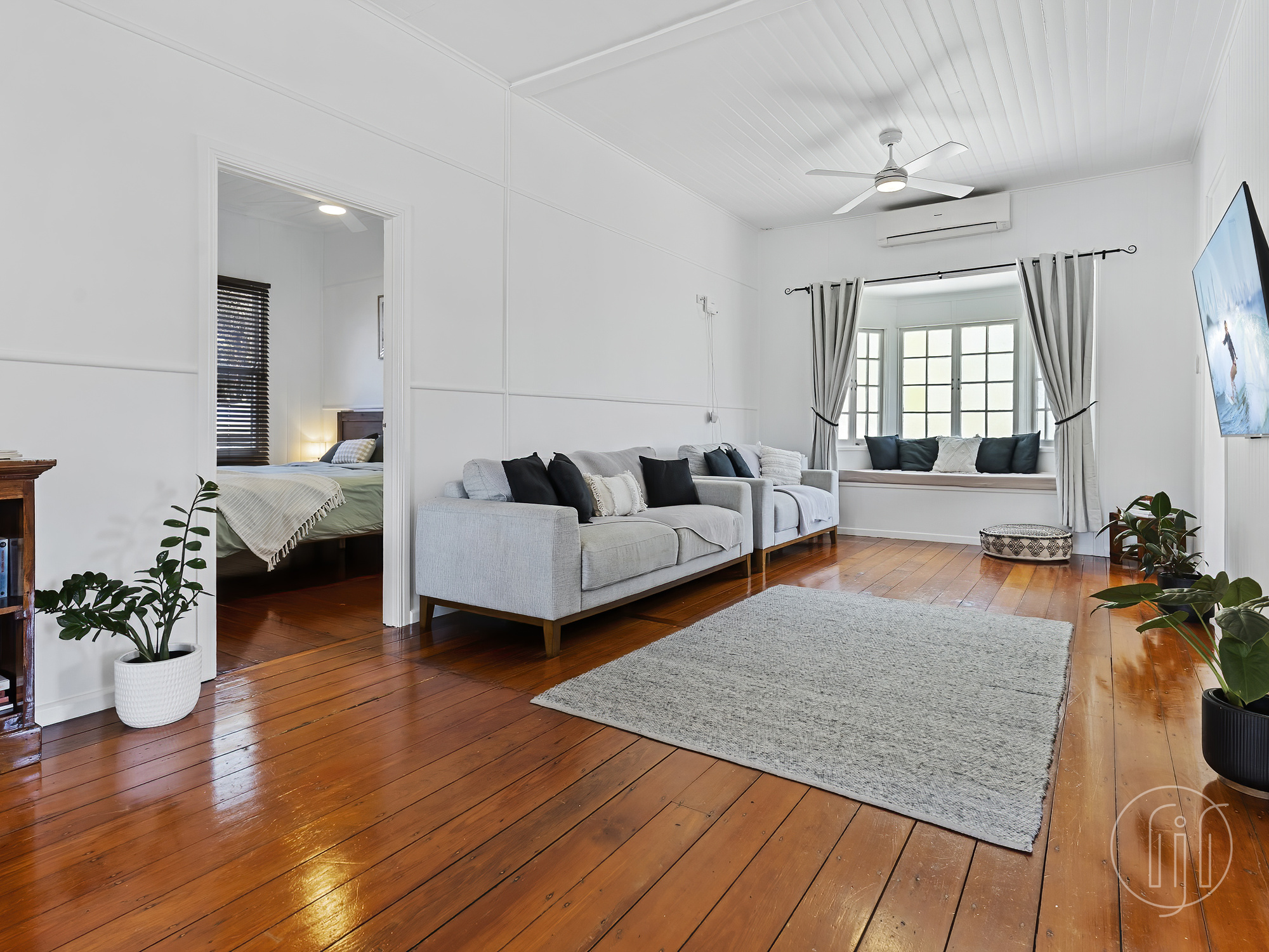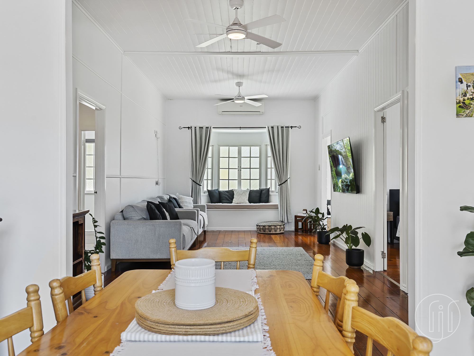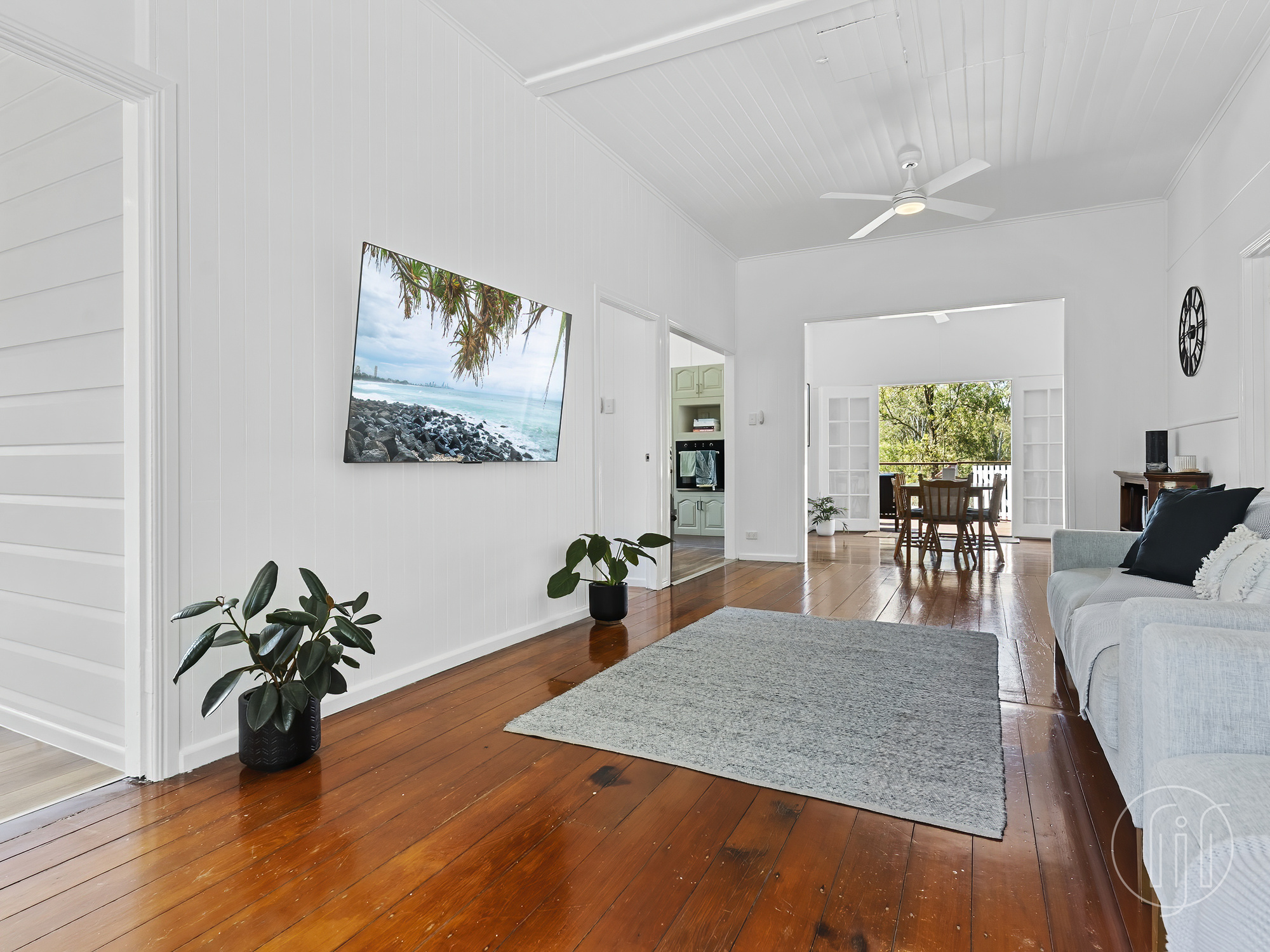 ELEVATED QUEENSLANDER! Sitting proudly at the front of this quarter-acre block, this pretty Queenslander home has been neatly maintained inside and out. The front stairs lead you into a large separate entrance with feature timber walls and a bank of louvre windows.