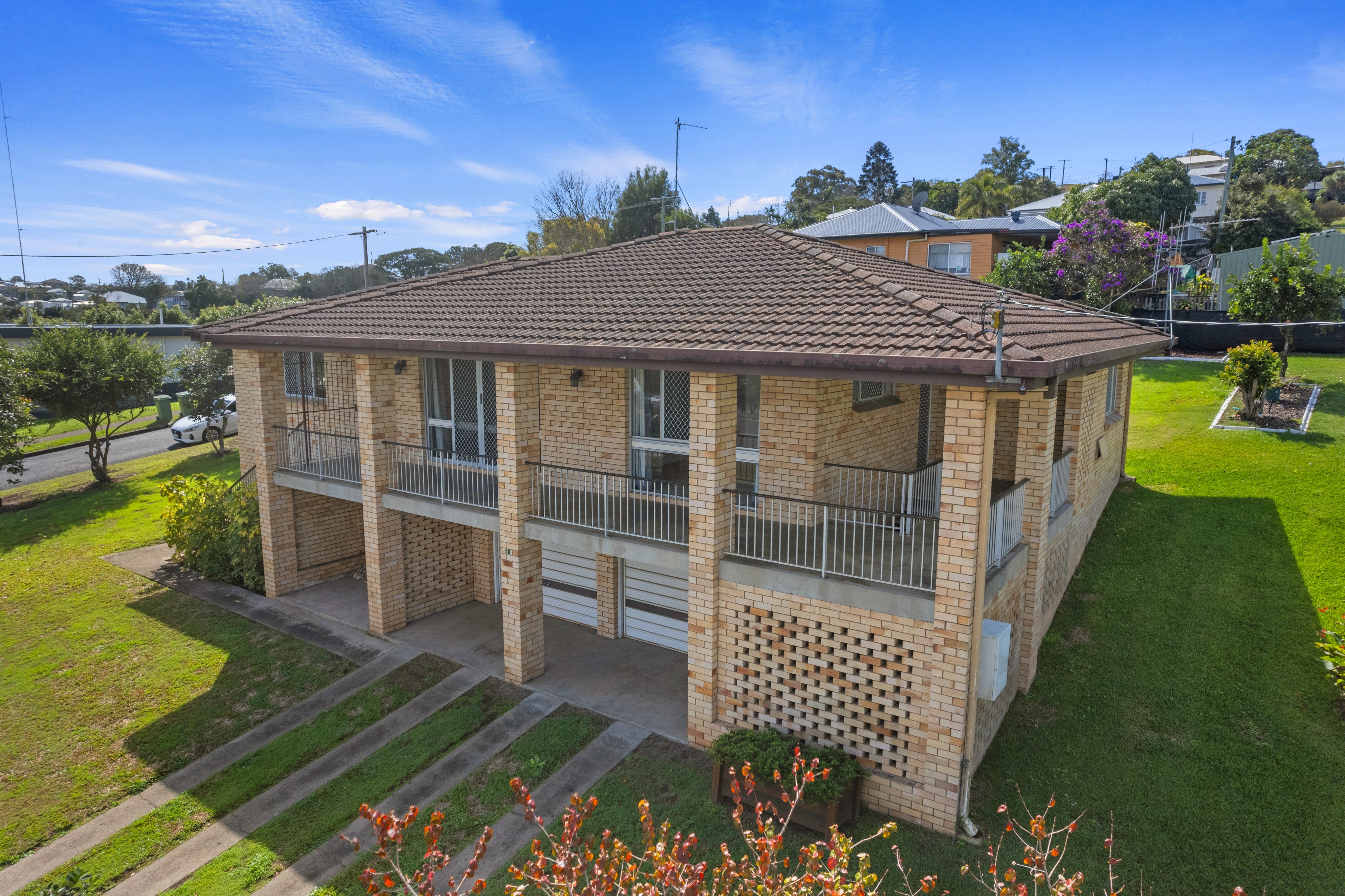 The lower level comprises a two car garage, ample storage space and a separate workshop area. A covered patio and carport at the rear of the property offer space for an additional two vehicles, if required.