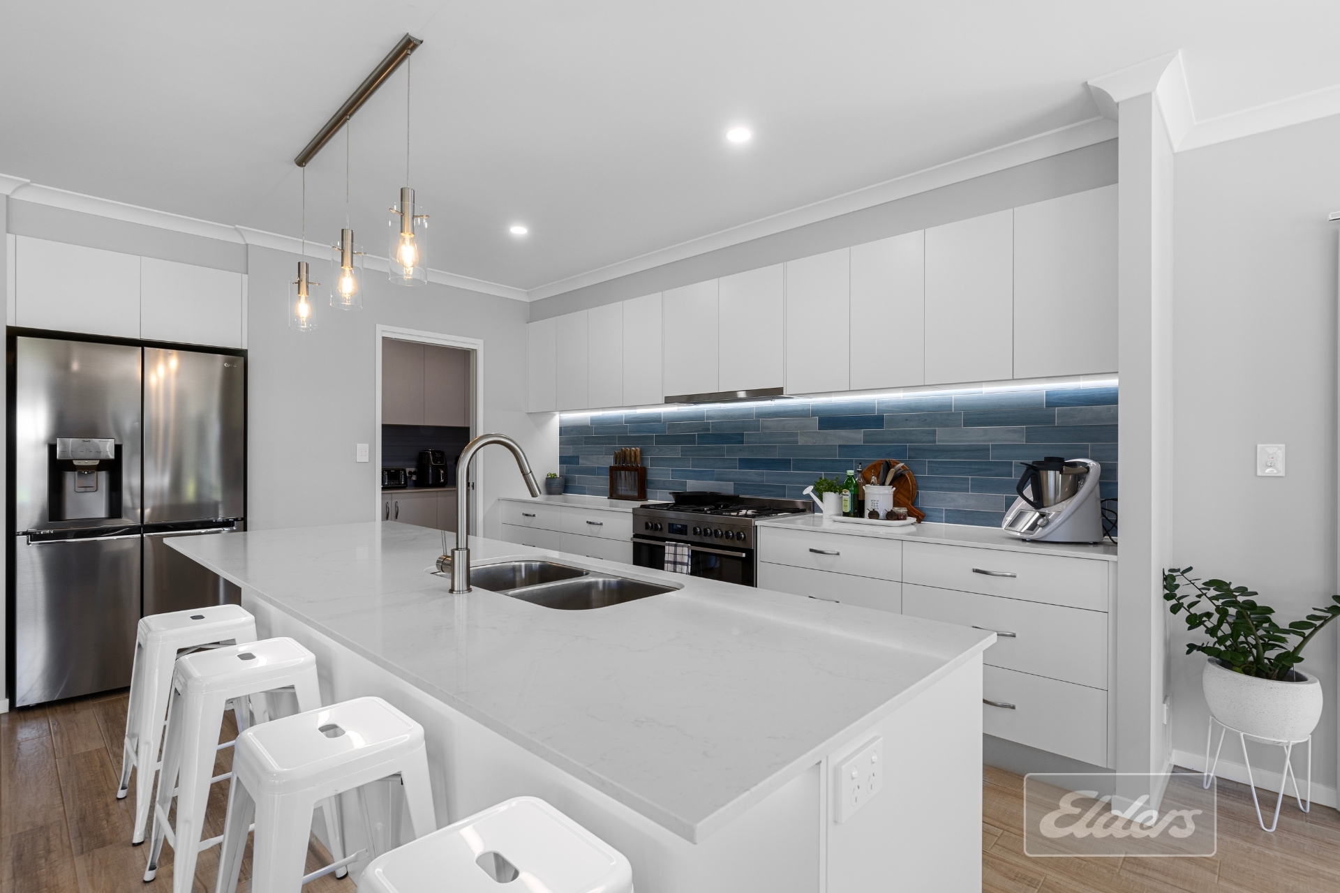Inside, the home continues to impress with its thoughtfully designed layout and high end finishes. The open plan living area serves as the heart of the home, where natural light floods in through large windows, creating a warm and inviting atmosphere. High ceilings, neutral tones, and quality finishes further enhance the sense of space and comfort. The gourmet kitchen, equipped with top of the line appliances including a 5 burner gas stove, stone bench tops, and ample storage with the large walk in pantry. The kitchen is truly a chef's delight and is perfectly positioned for entertaining, with seamless flow to the laundry facility.