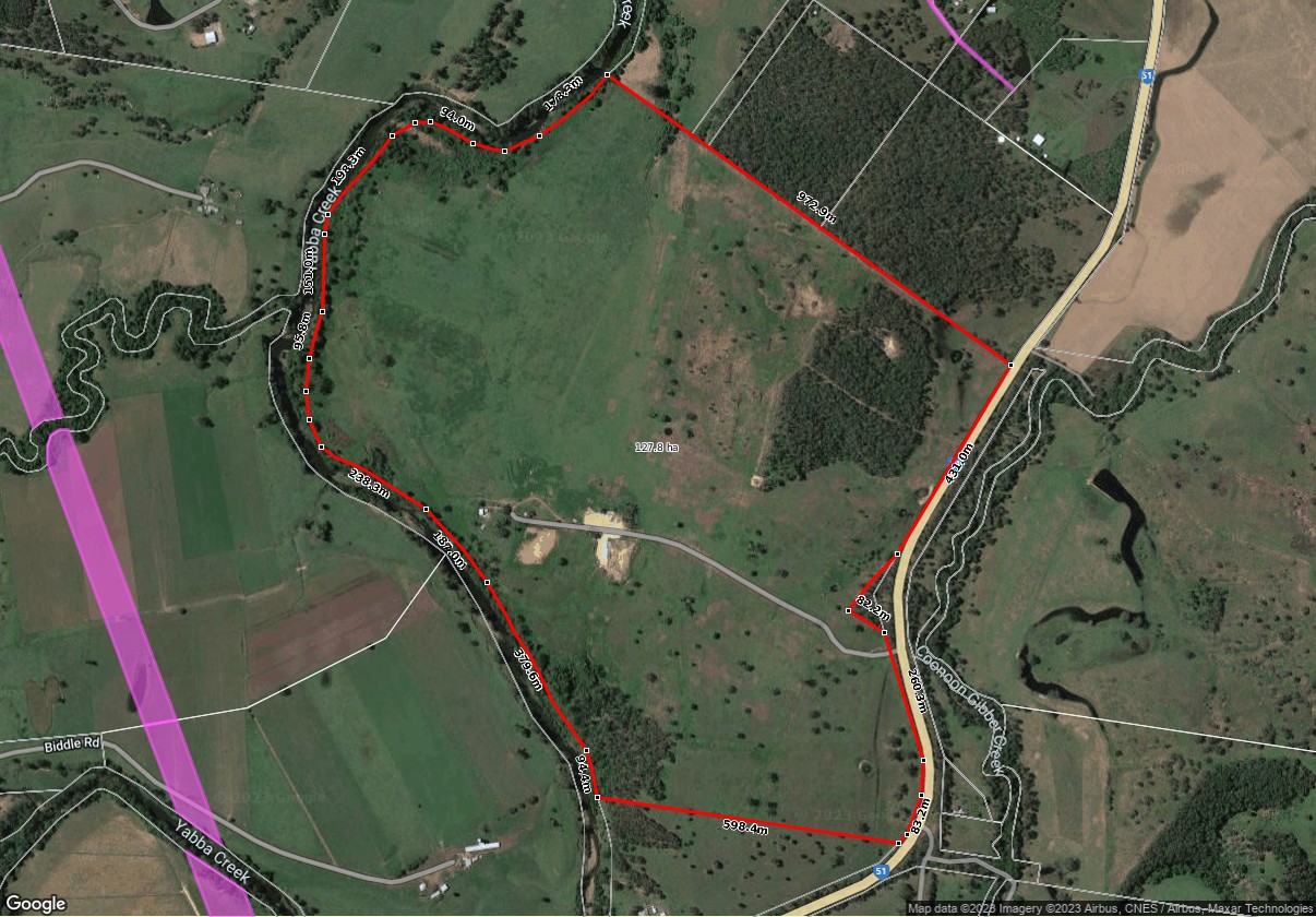 The property boasts highly productive pastures for either cropping and/or grazing and features rich fertile soils and expansive alluvial creek flats leading to a small scattering of Bloodwood, Ironbark and Spotted gums on the higher ridge. Existing grasses such as Rhodes, Signal and Kikuyu run throughout, with approximately 2.5 km’s of direct Yabba Creek frontage providing an ample water supply, supported by an equipped solar stock bore.