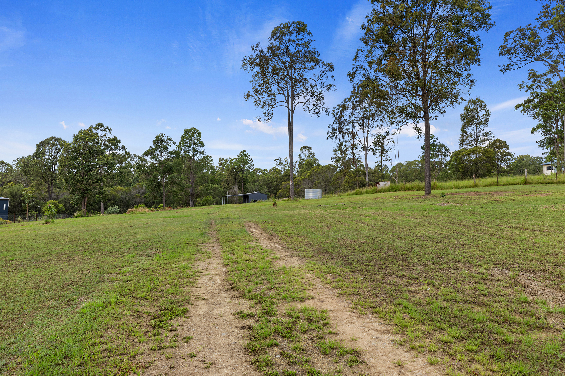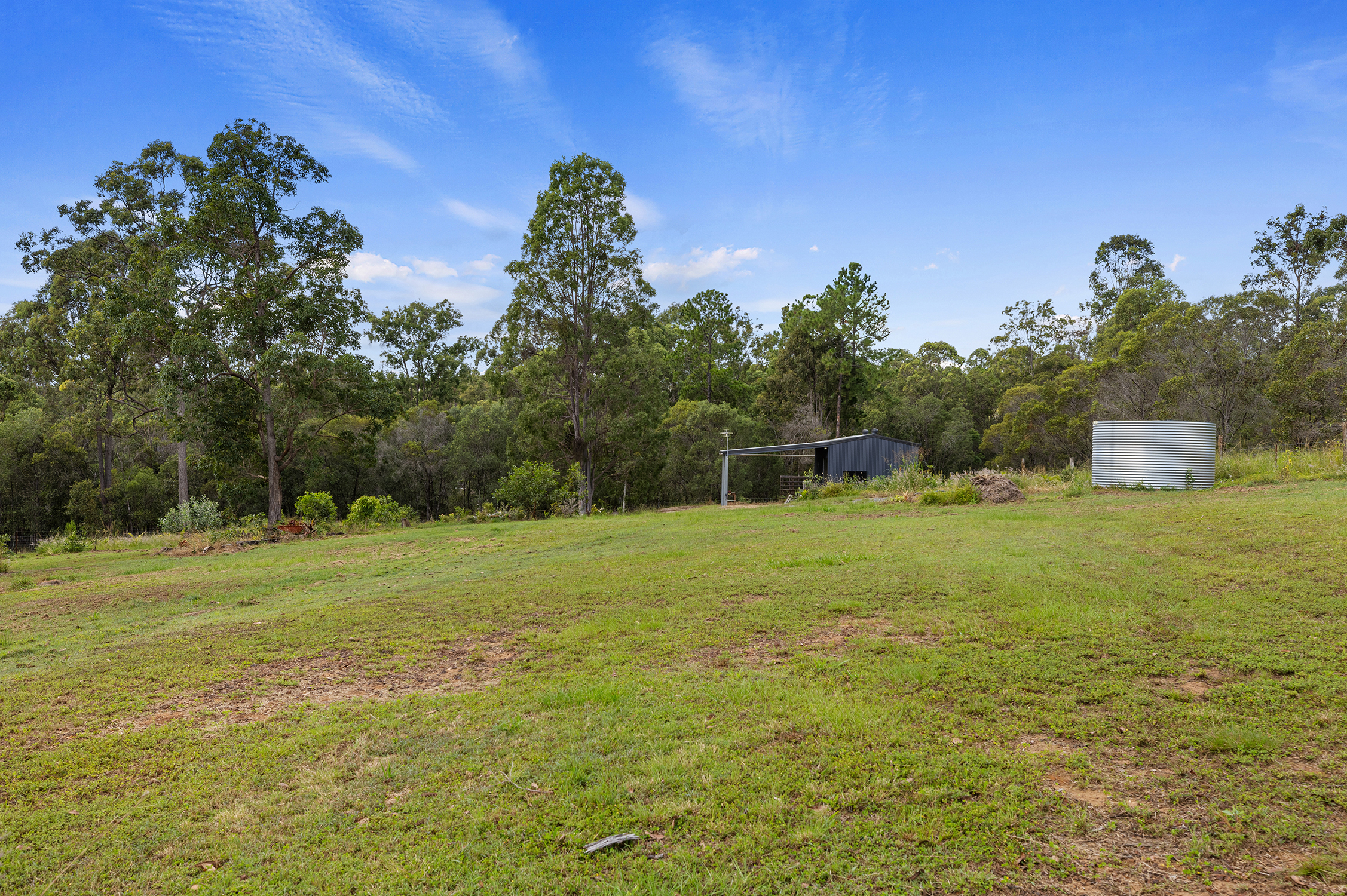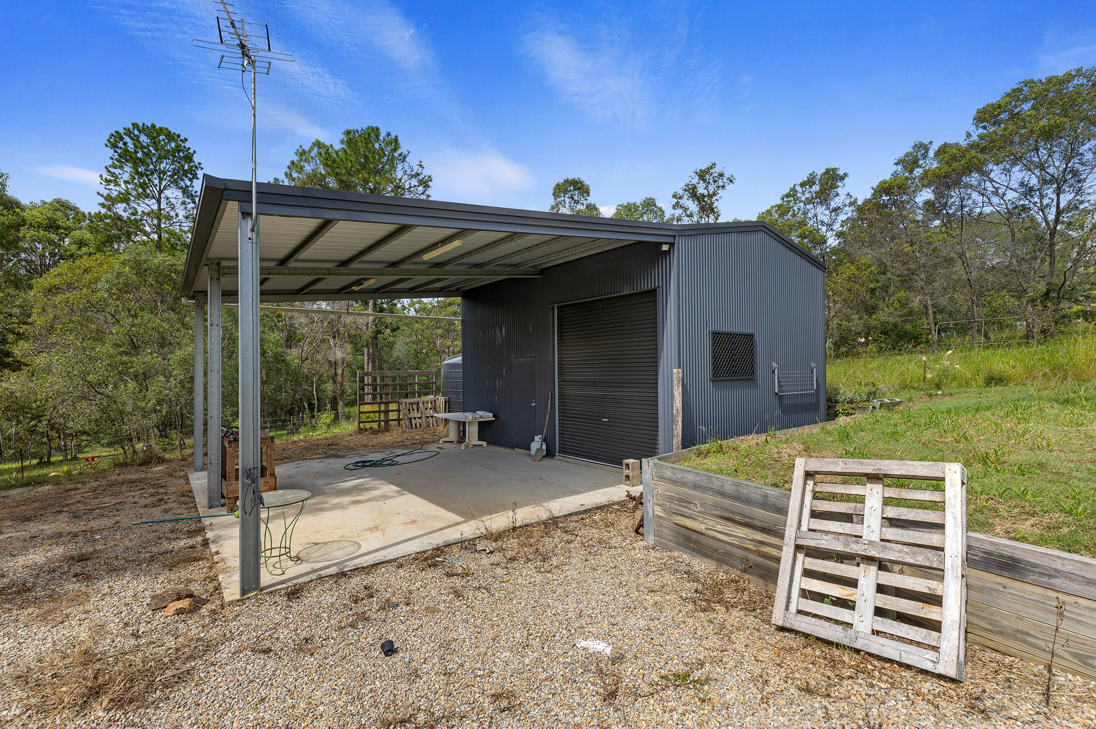 The fully fenced 5,996sqm allotment boasts an ample sized shed measuring at 7m x 5m, complete with a 7m x 6m awning, ideal for housing your caravan or serving as storage during construction. The shed features its own small solar system that provides sufficient lighting but is also pre-wired if you prefer to connect it to main power – offering both off-grid and grid-tied options.