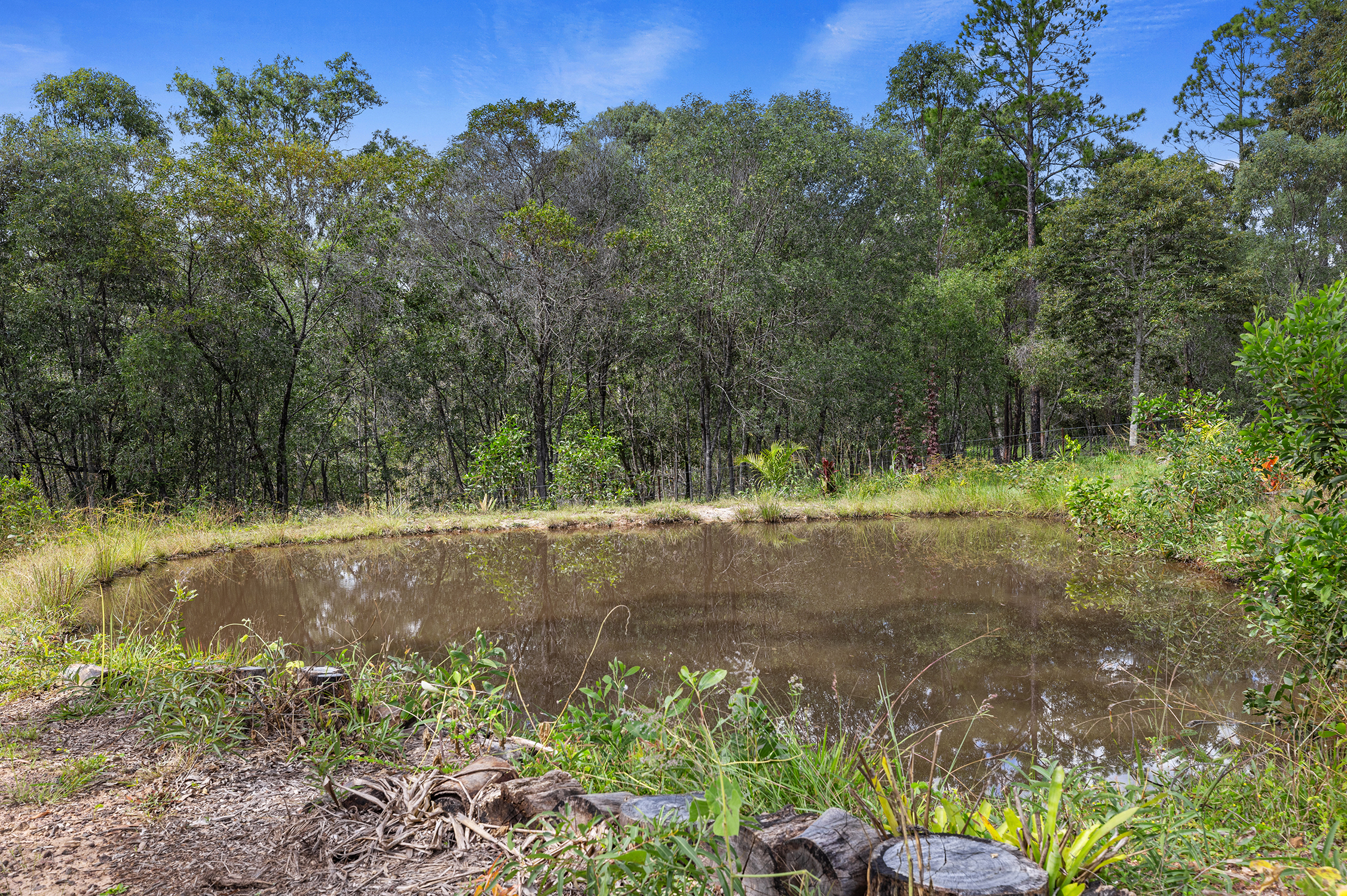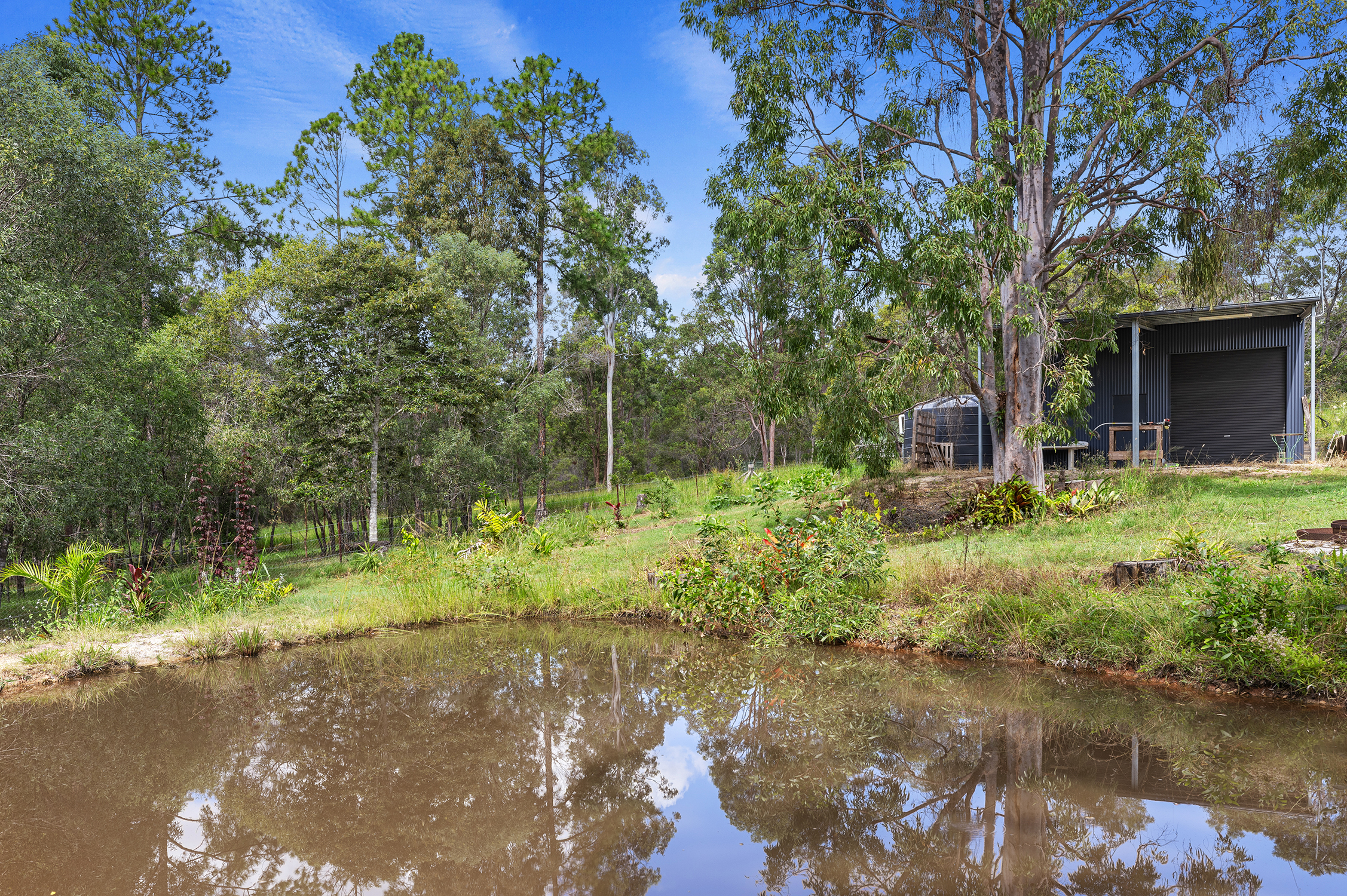But there's more than just practicality here; beauty surrounds you too. The land itself exudes natural allure with several optimal building sites available amidst picturesque scenery. A captivating dam adds further character while providing an excellent water source for flourishing gardens.