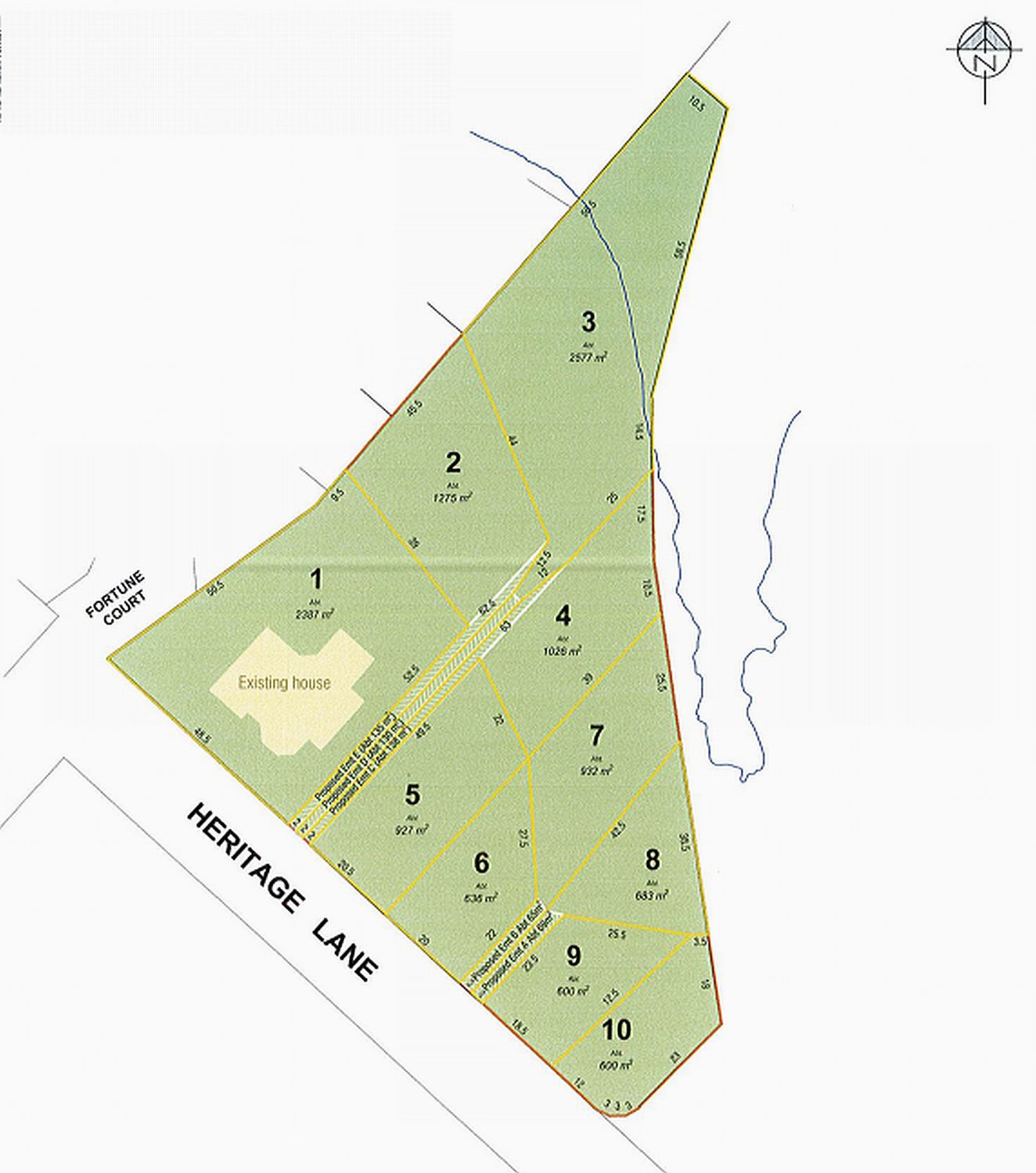Lots ranging in size from 600m2 to 2577m2.